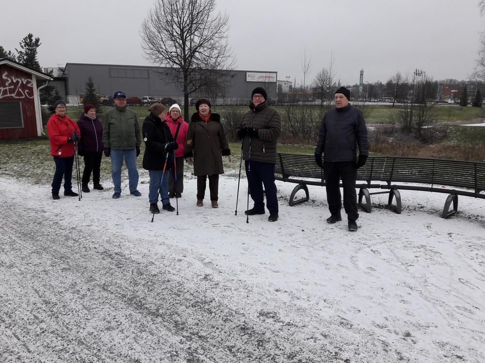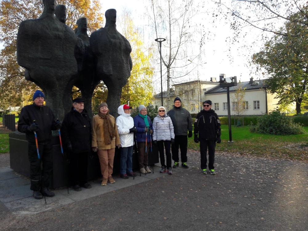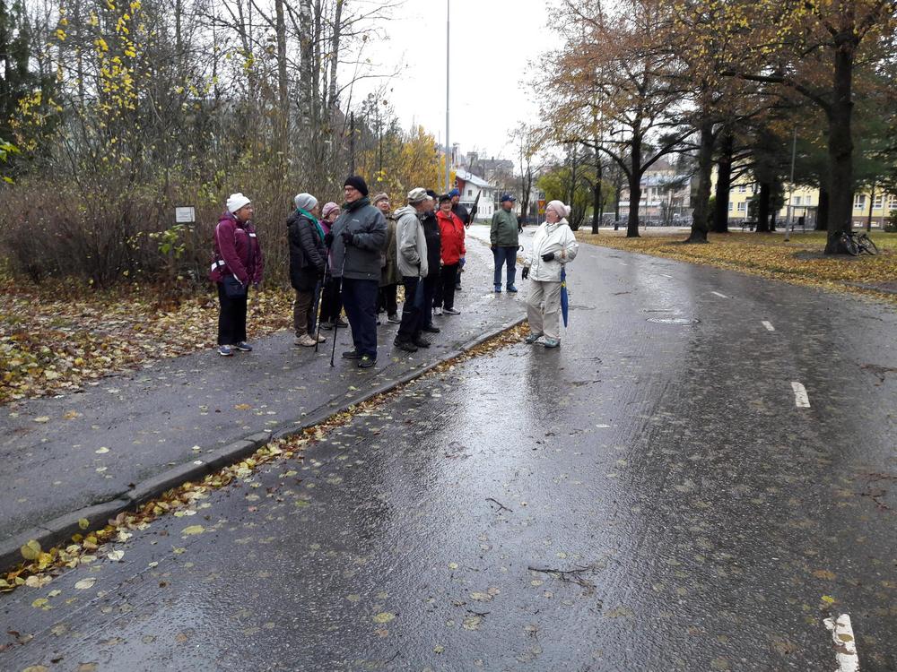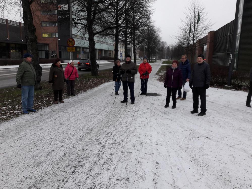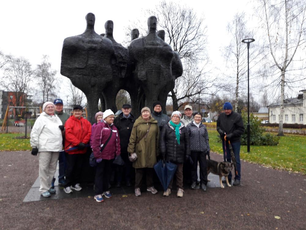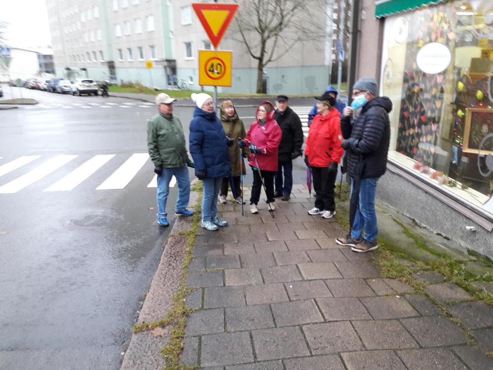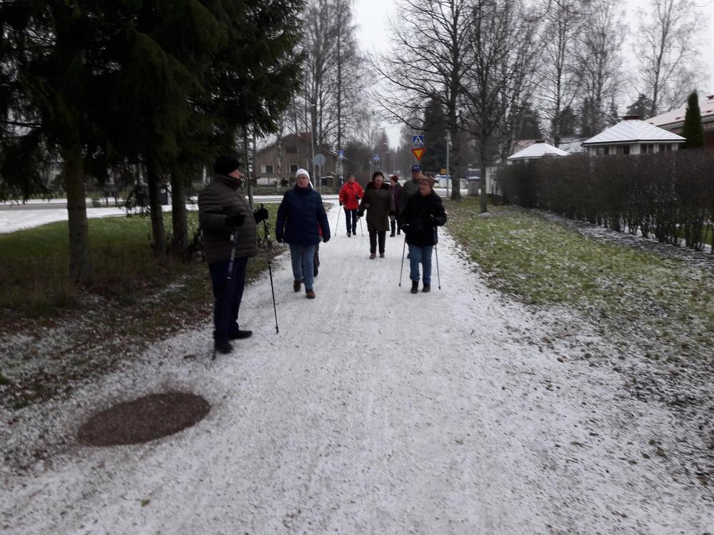 Tiistaina 17.11. kosteaan säähän oli uskaltautunut 9 senioria. Reitti kulki Topparoikka-patsaalta Valtakadun ja Koulukadun kautta kuntoradalle. Täältä laskeuduttiin Karankadulle ja sieltä edelleen Pohjoisen Rautatienkatua Kino Sammolle. Matkalla Niemisen Raimo kertoi reitin varrella olevien paikkojen historiasta.