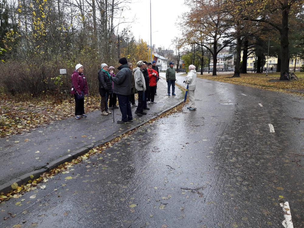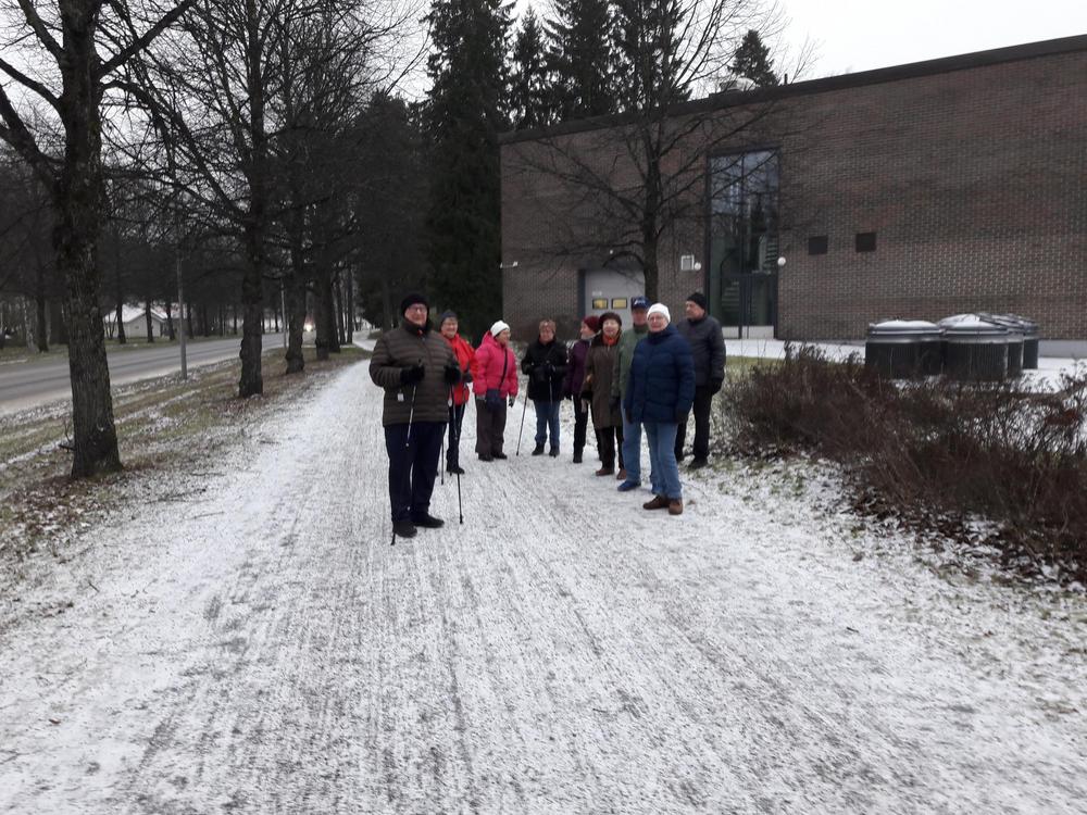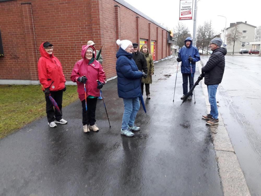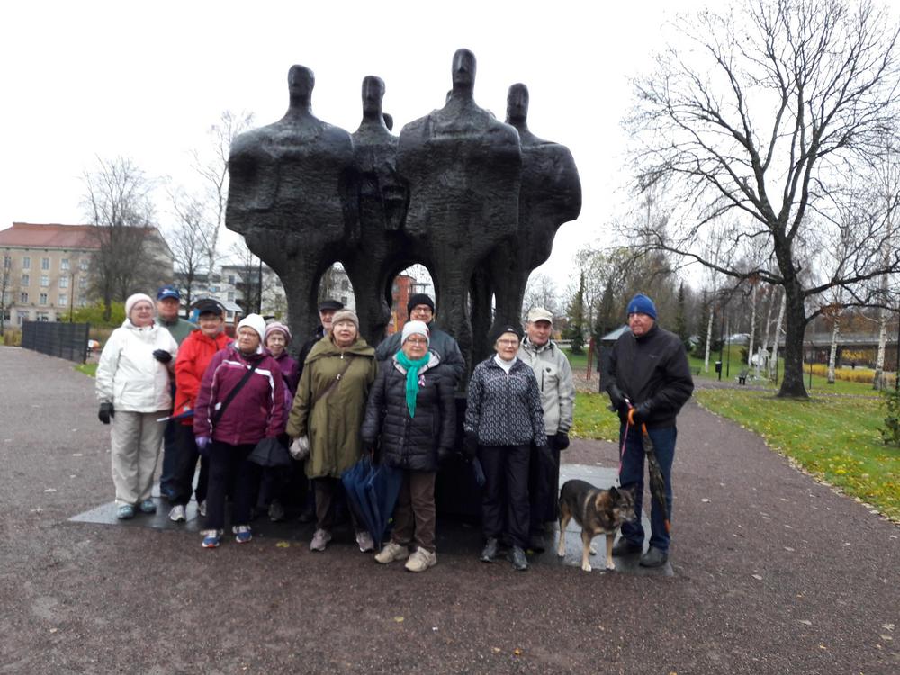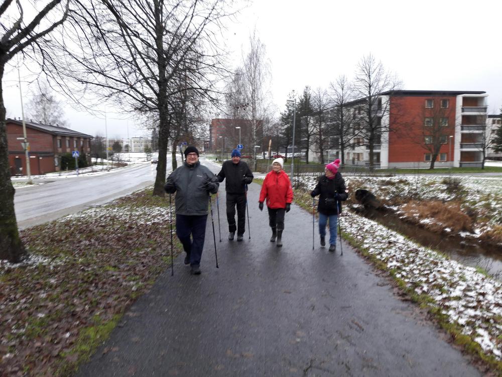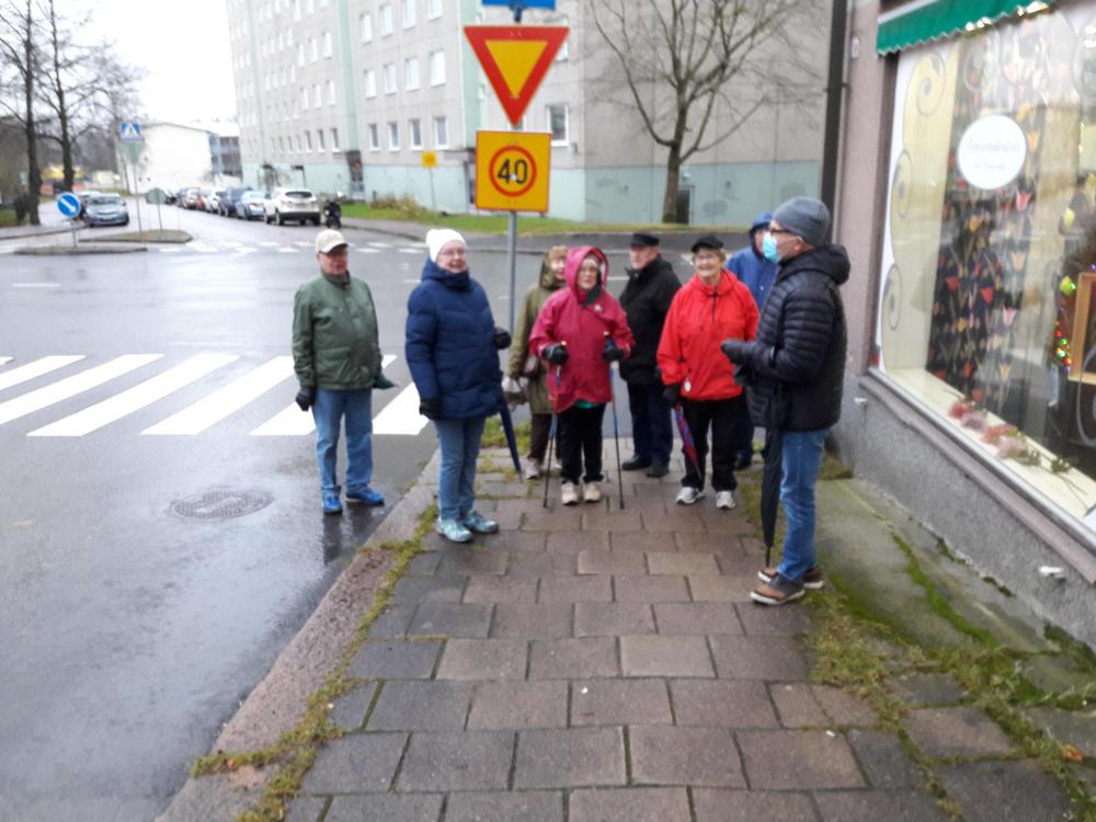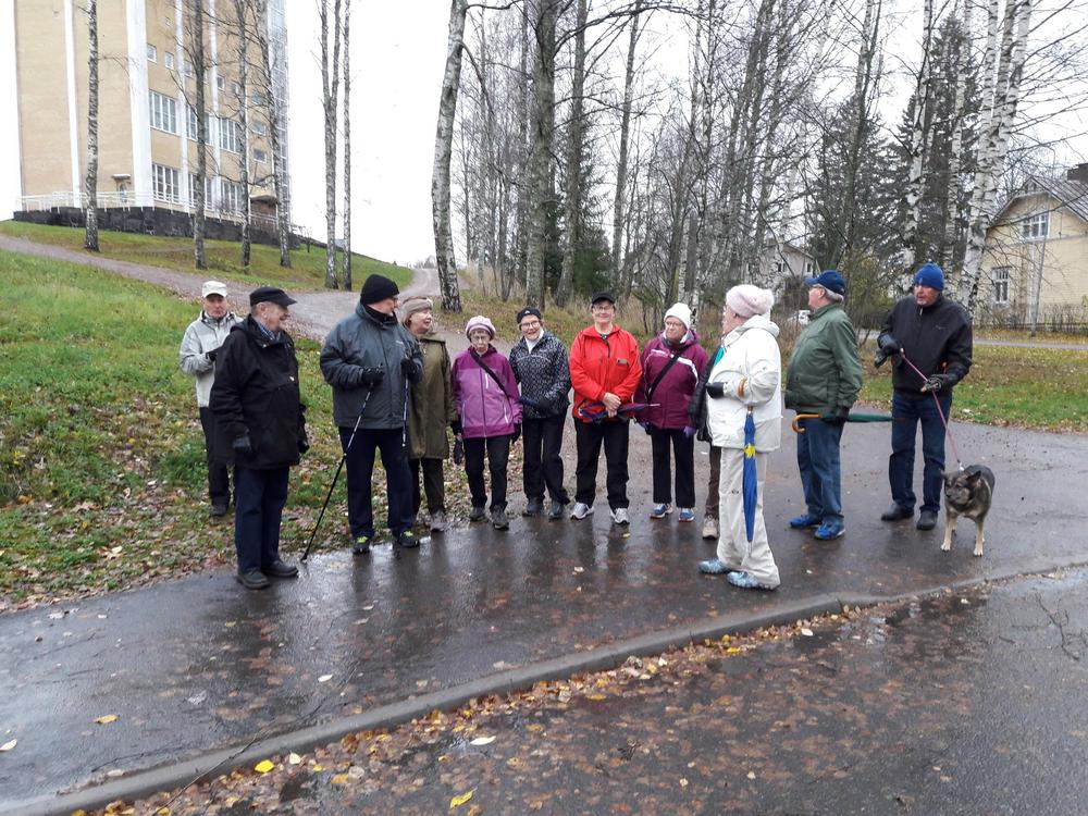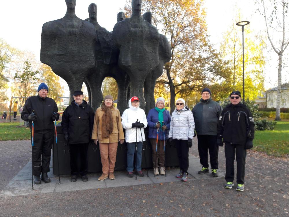 Tiistaina 17.11. kosteaan säähän oli uskaltautunut 9 senioria. Reitti kulki Topparoikka-patsaalta Valtakadun ja Koulukadun kautta kuntoradalle. Täältä laskeuduttiin Karankadulle ja sieltä edelleen Pohjoisen Rautatienkatua Kino Sammolle. Matkalla Niemisen Raimo kertoi reitin varrella olevien paikkojen historiasta.