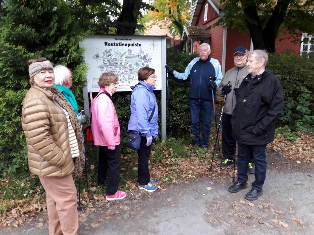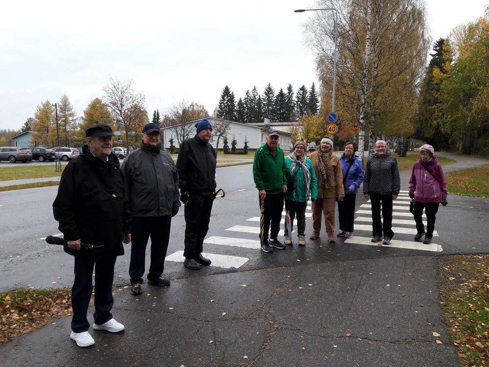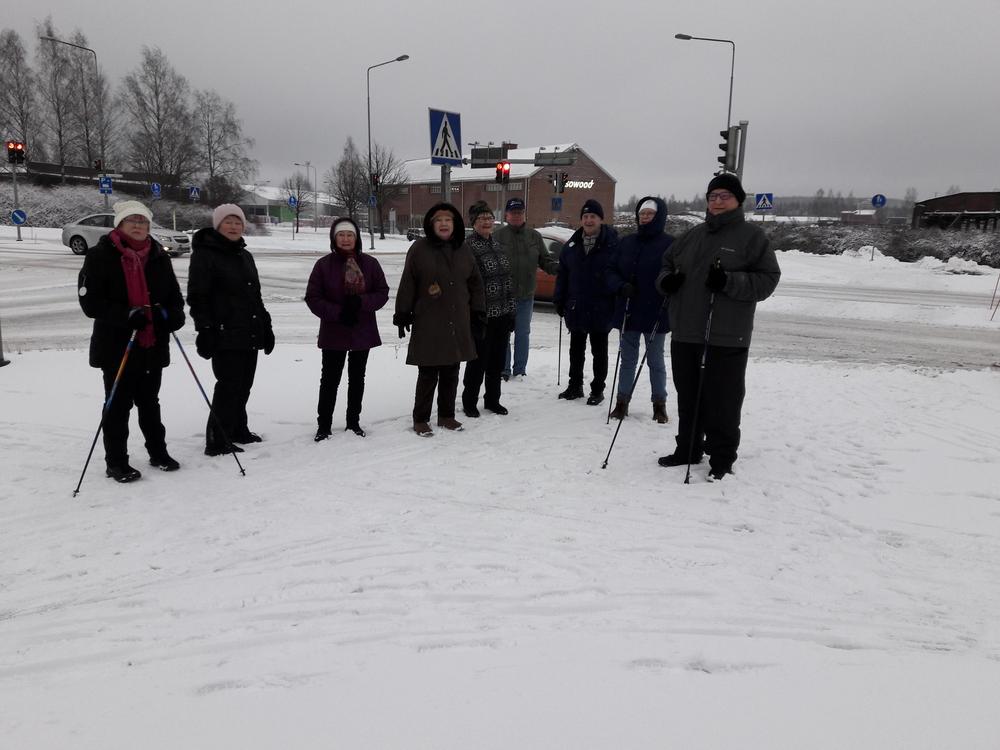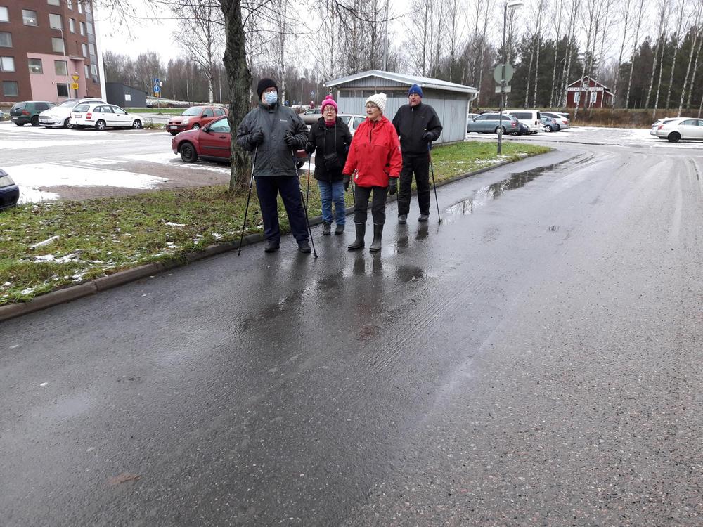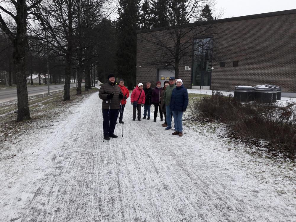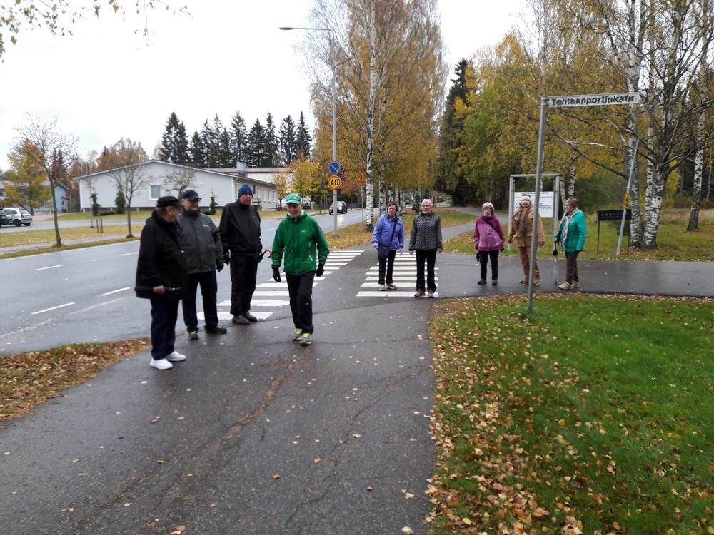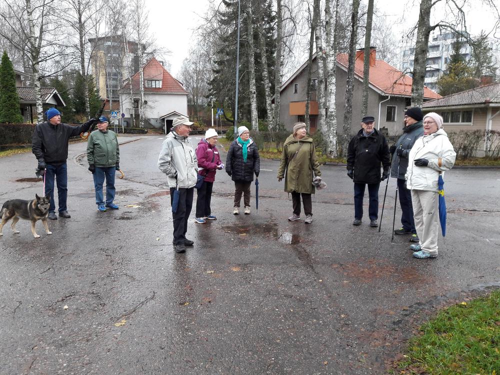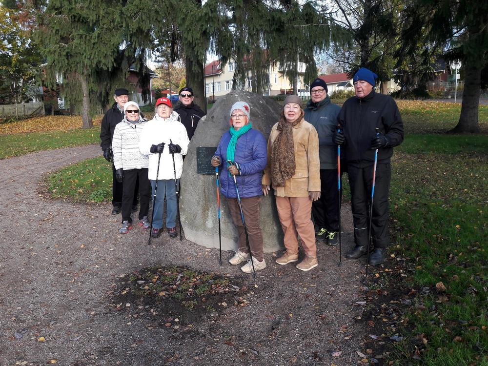 Tiistaina 17.11. kosteaan säähän oli uskaltautunut 9 senioria. Reitti kulki Topparoikka-patsaalta Valtakadun ja Koulukadun kautta kuntoradalle. Täältä laskeuduttiin Karankadulle ja sieltä edelleen Pohjoisen Rautatienkatua Kino Sammolle. Matkalla Niemisen Raimo kertoi reitin varrella olevien paikkojen historiasta.