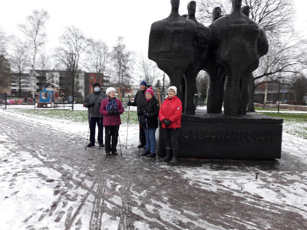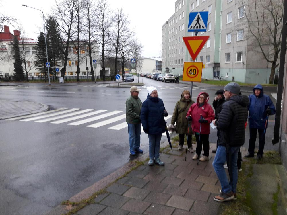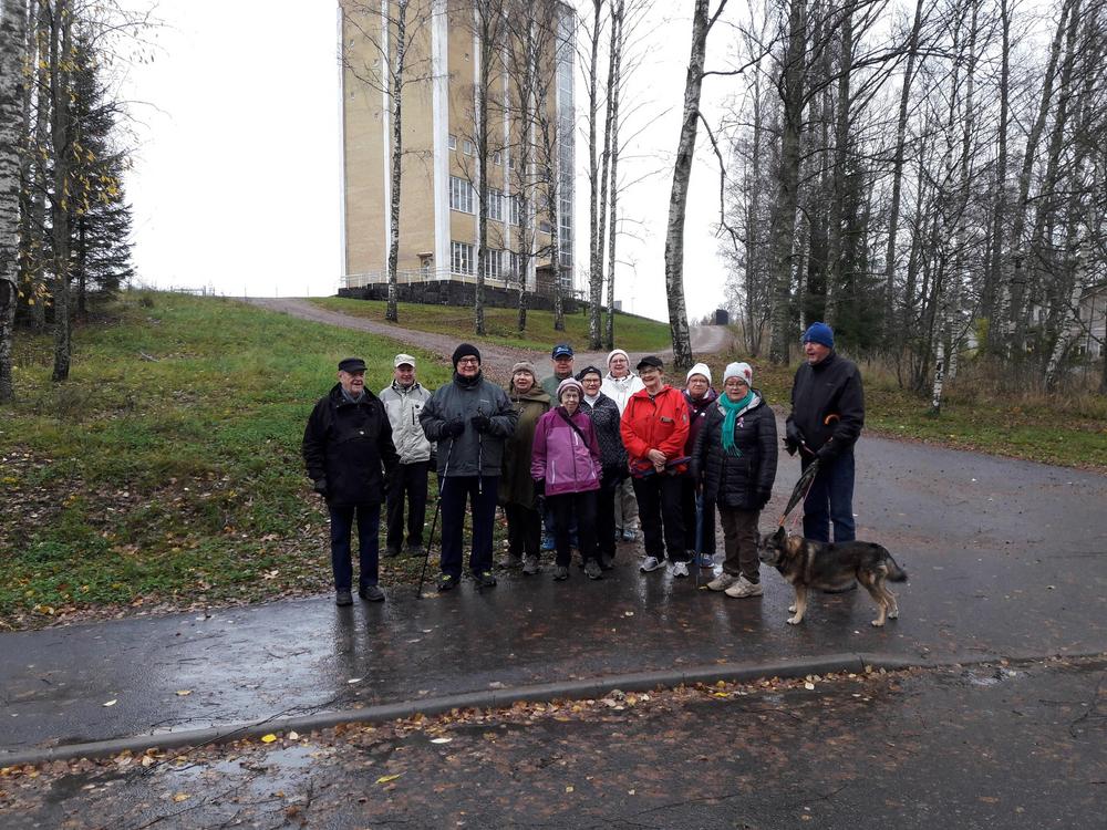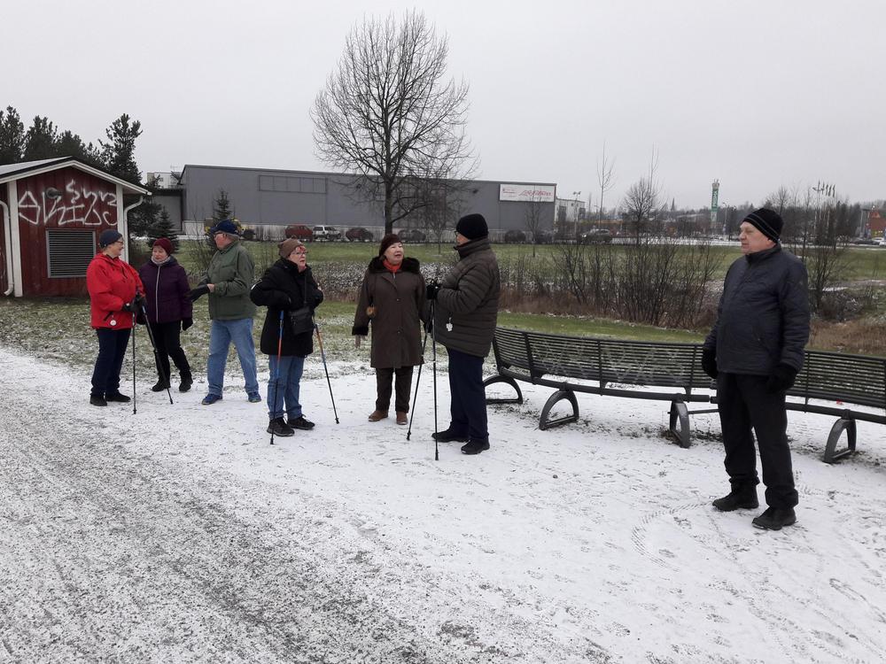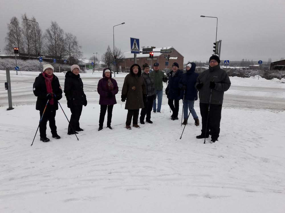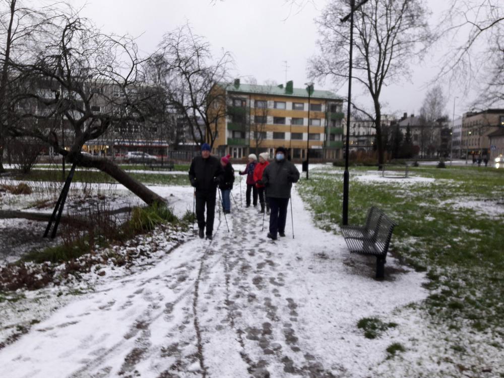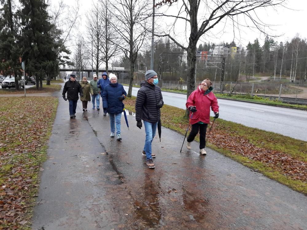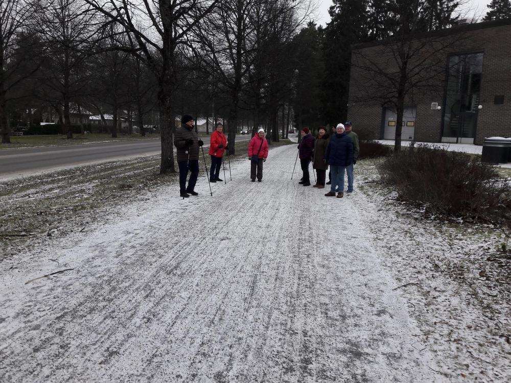 Tiistaina 17.11. kosteaan säähän oli uskaltautunut 9 senioria. Reitti kulki Topparoikka-patsaalta Valtakadun ja Koulukadun kautta kuntoradalle. Täältä laskeuduttiin Karankadulle ja sieltä edelleen Pohjoisen Rautatienkatua Kino Sammolle. Matkalla Niemisen Raimo kertoi reitin varrella olevien paikkojen historiasta.