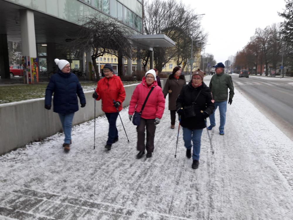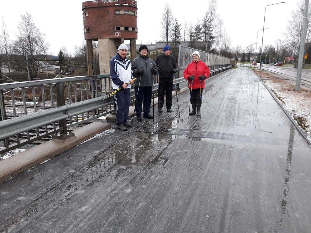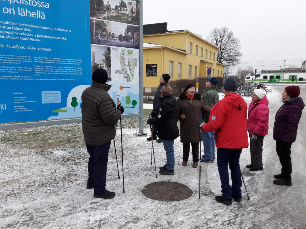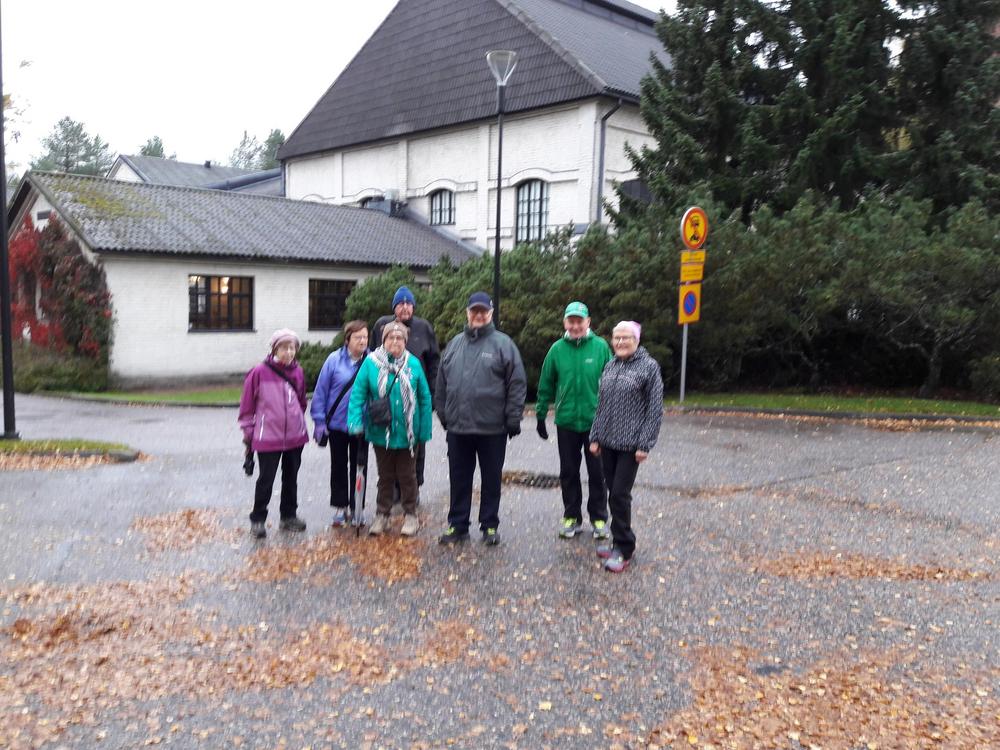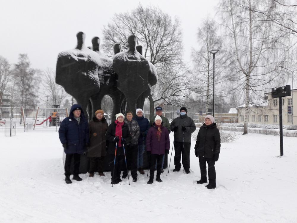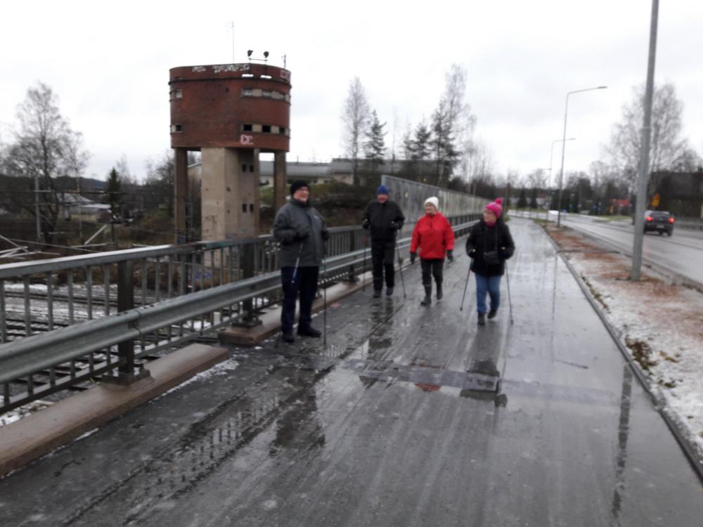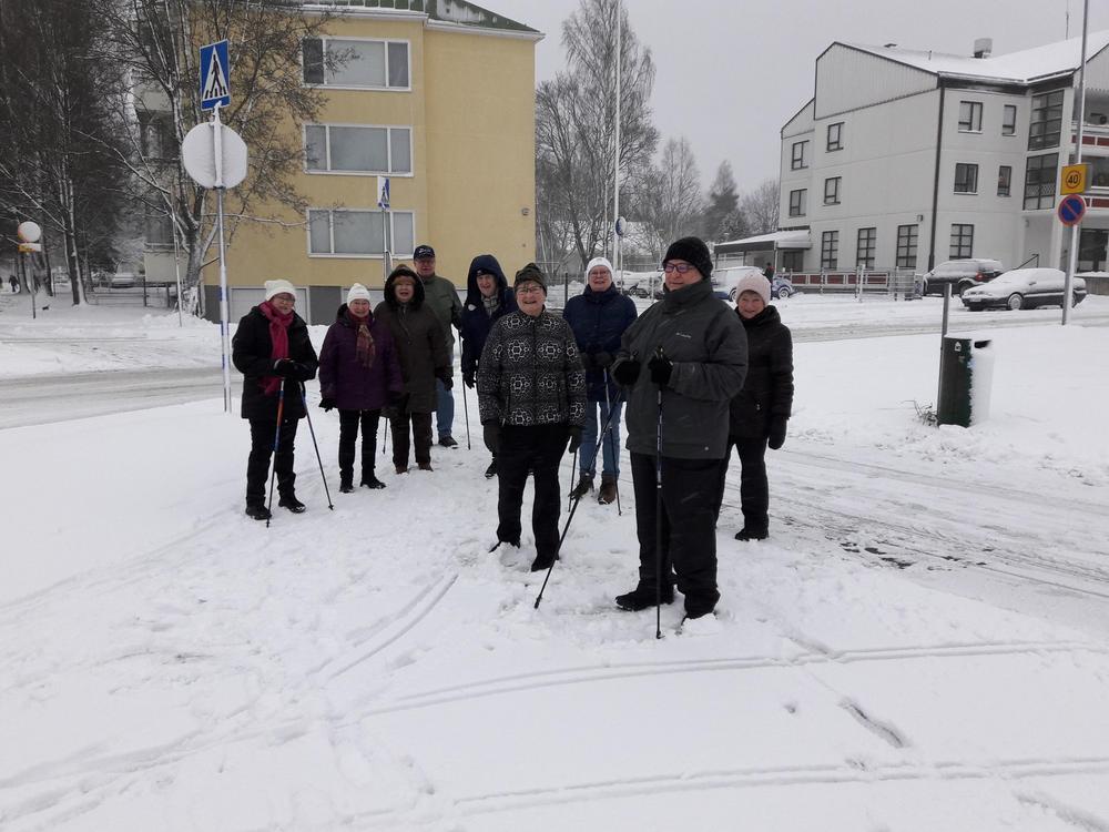 Tiistaina 17.11. kosteaan säähän oli uskaltautunut 9 senioria. Reitti kulki Topparoikka-patsaalta Valtakadun ja Koulukadun kautta kuntoradalle. Täältä laskeuduttiin Karankadulle ja sieltä edelleen Pohjoisen Rautatienkatua Kino Sammolle. Matkalla Niemisen Raimo kertoi reitin varrella olevien paikkojen historiasta.