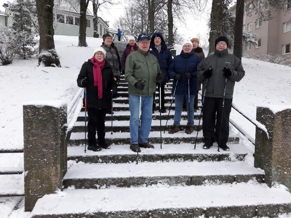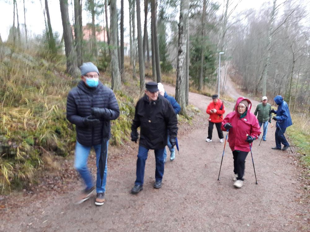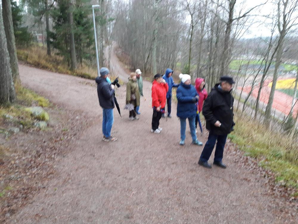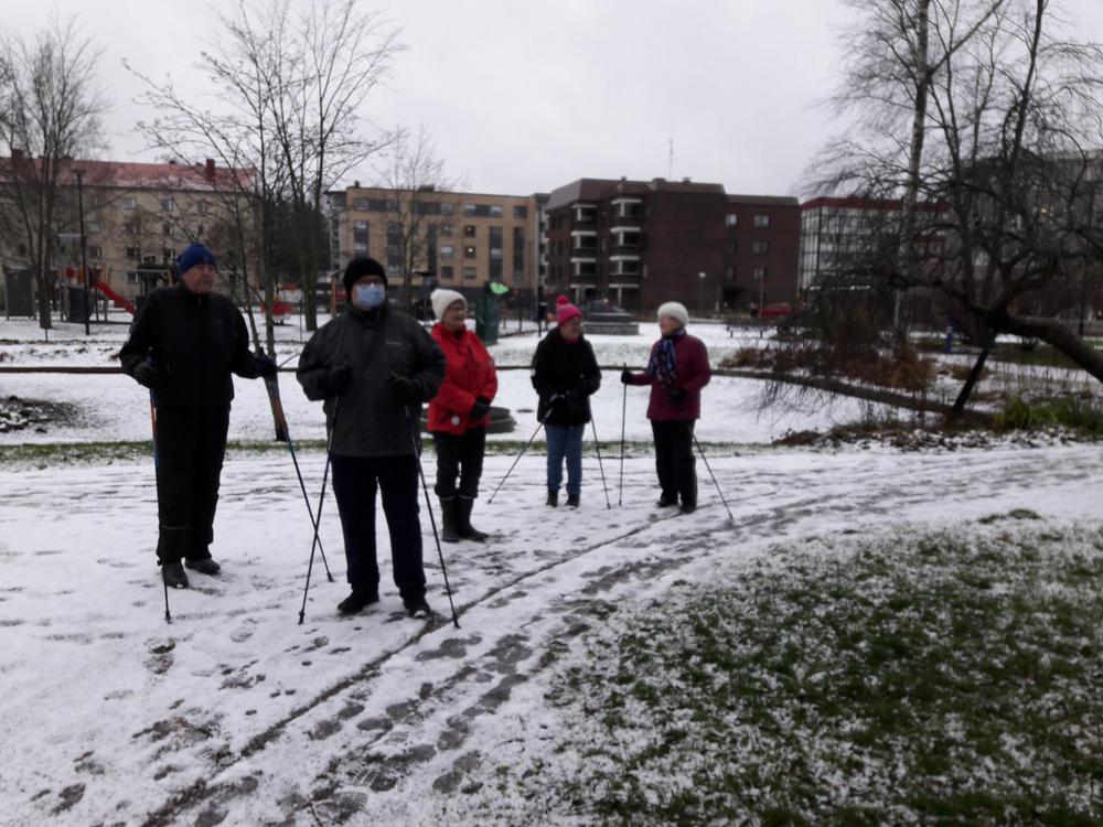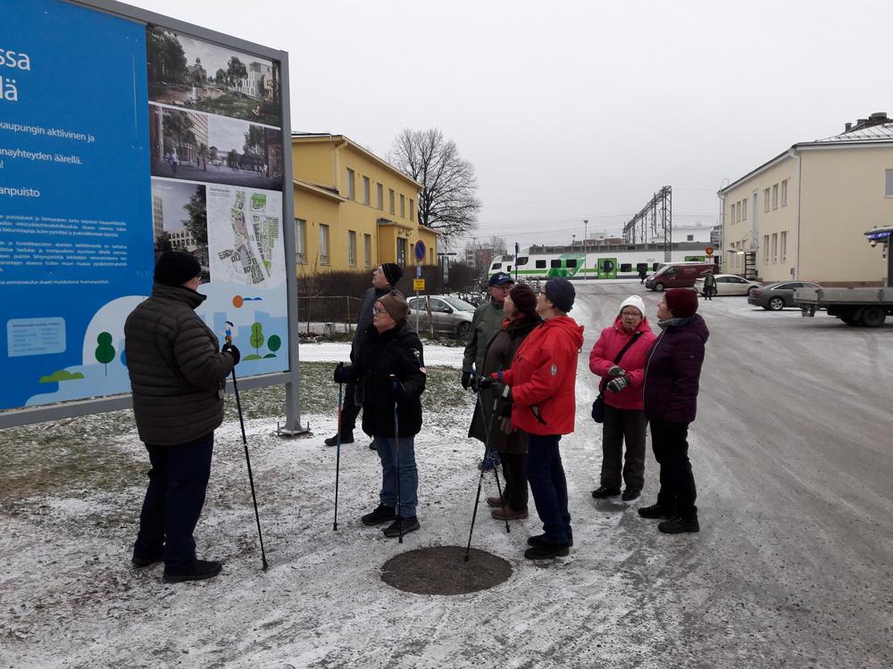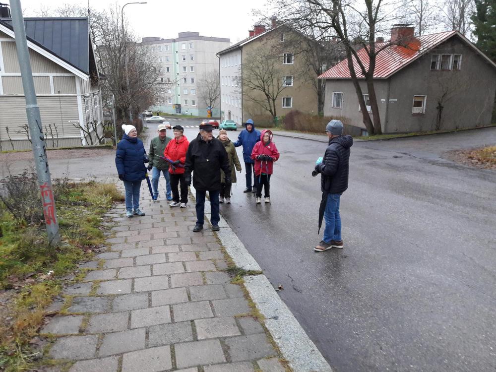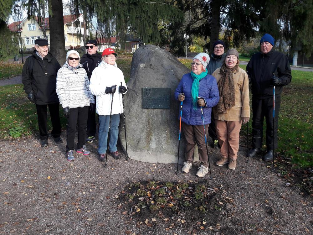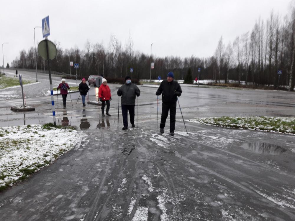 Tiistaina 17.11. kosteaan säähän oli uskaltautunut 9 senioria. Reitti kulki Topparoikka-patsaalta Valtakadun ja Koulukadun kautta kuntoradalle. Täältä laskeuduttiin Karankadulle ja sieltä edelleen Pohjoisen Rautatienkatua Kino Sammolle. Matkalla Niemisen Raimo kertoi reitin varrella olevien paikkojen historiasta.