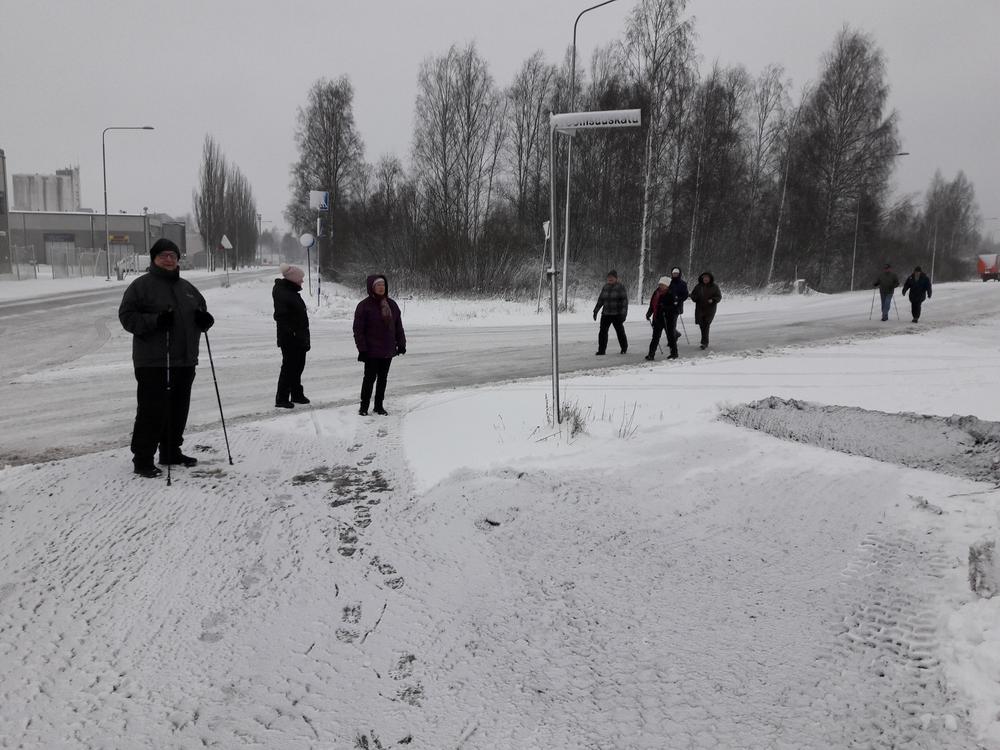 Tiistaina 29.12. kohteena oli Peltokylän ja Jokikylän kaupunginosat. Kuljimme reittiä Lopentie, Kaarlonkatu, Karoliinankatu, Teollisuuskatu ja sieltä edelleen Arolammintietä Eteläiselle Asemakadun kautta Pohjoiselle Asemakadulle. Matka päättyi lähtöpisteeseen, Topparoikka-patsaalle. Mukana pikku pakkasessa oli 10 senioria.