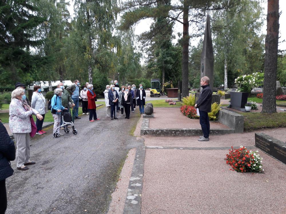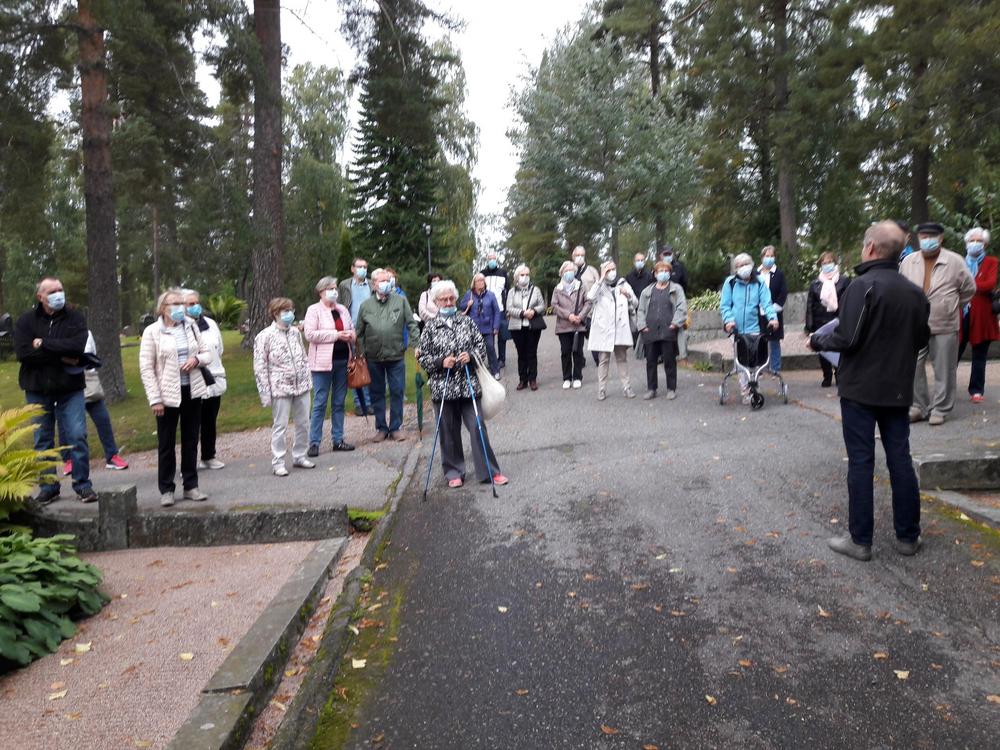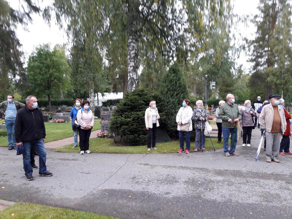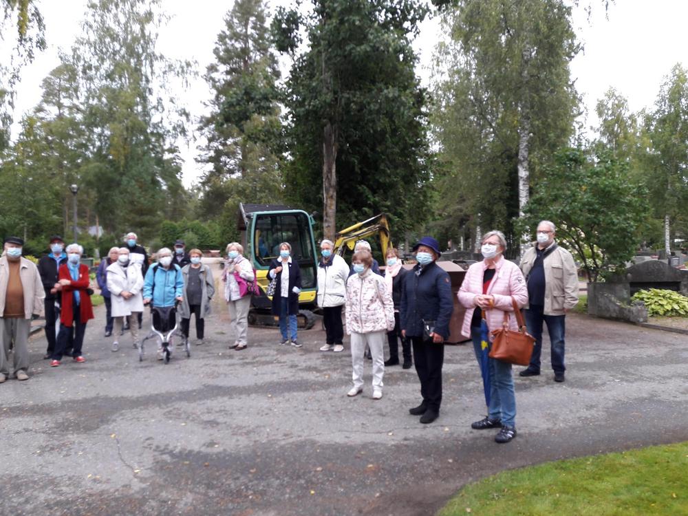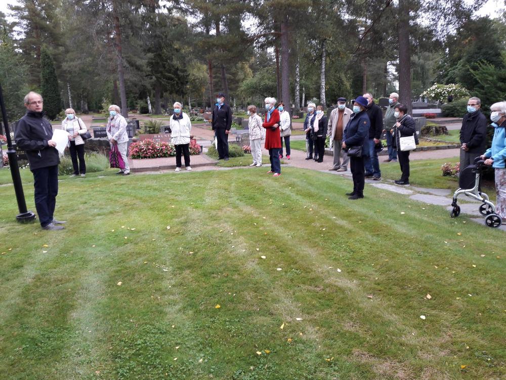 Koronasuosituksia noudattaen, avasimme syyskauden tutustumalla hautausmaan historiaan rovasti Kalervo Huttusen opastuksella. Poutainen sää suosi tapahtumaa, johon osallistui runsaat 30 innokasta kävelijää.
