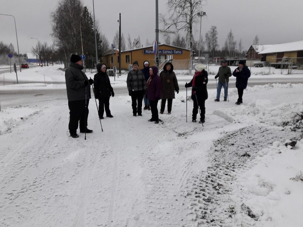 Tiistaina 15.12. oli kävelyretken kohteena kaupungin keskusta. Kuljimme Kauppakadun kautta Kalevankadulle ja sieltä edelleen Sakonkadun ja Kulmalan Puistokadun kautta Rautatietorille, missä päädyimme ihastelemaan uuden Riihimäen mainostaulua. Mukana oli 10 senioria.