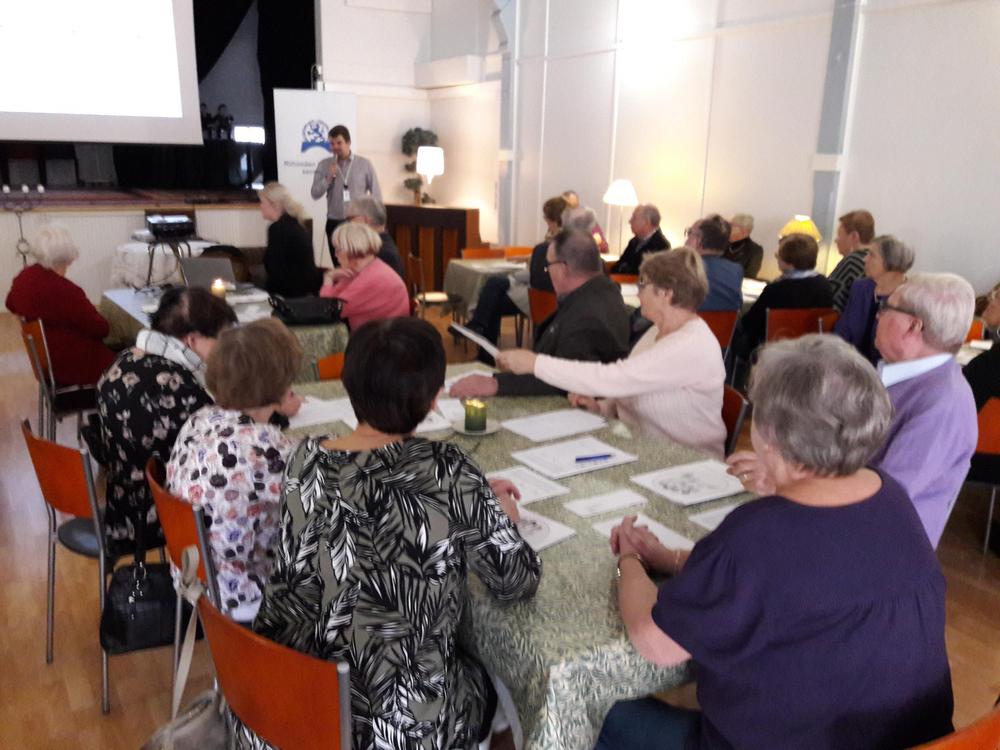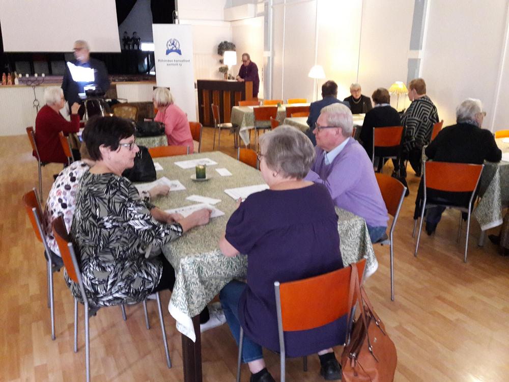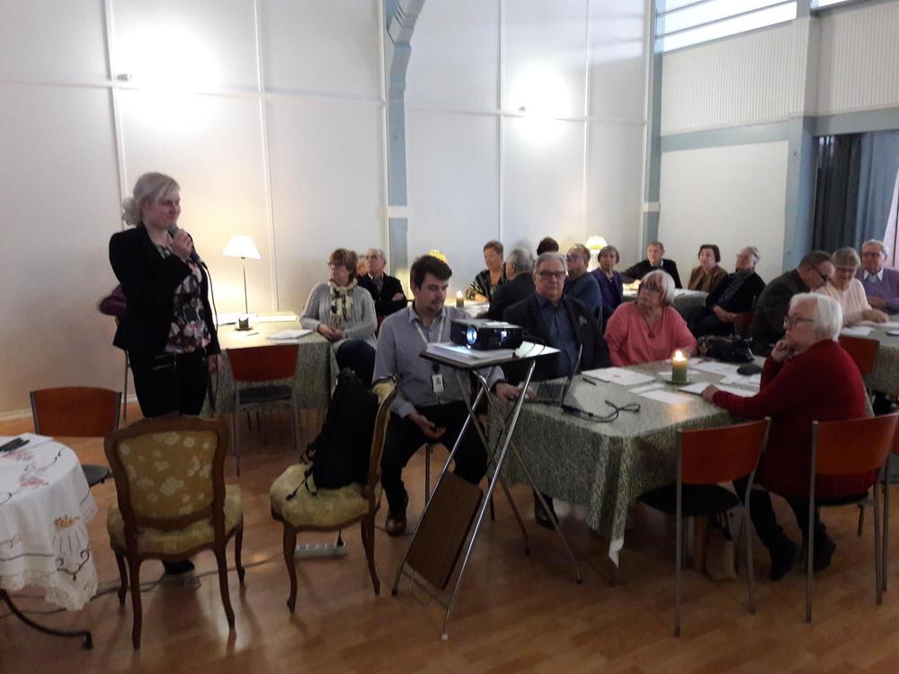 Lokakuun kuukausitapaamiseen kokoonnuimme puolentoista vuoden tauon jälkeen kahvila Pompotiin, Punaiseen taloon. Paikalle oli saapunut 38 yhdistyksemme jäsentä. OP Etelä-Hämeestä Triinu Poussu ja Joonas Oksamo esittelivät pankin toimintaa.