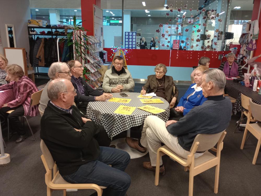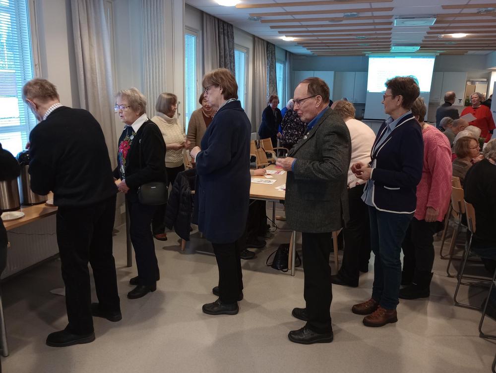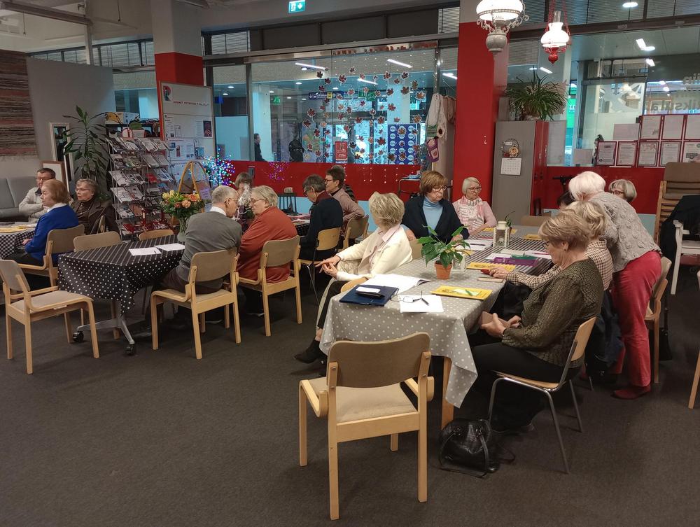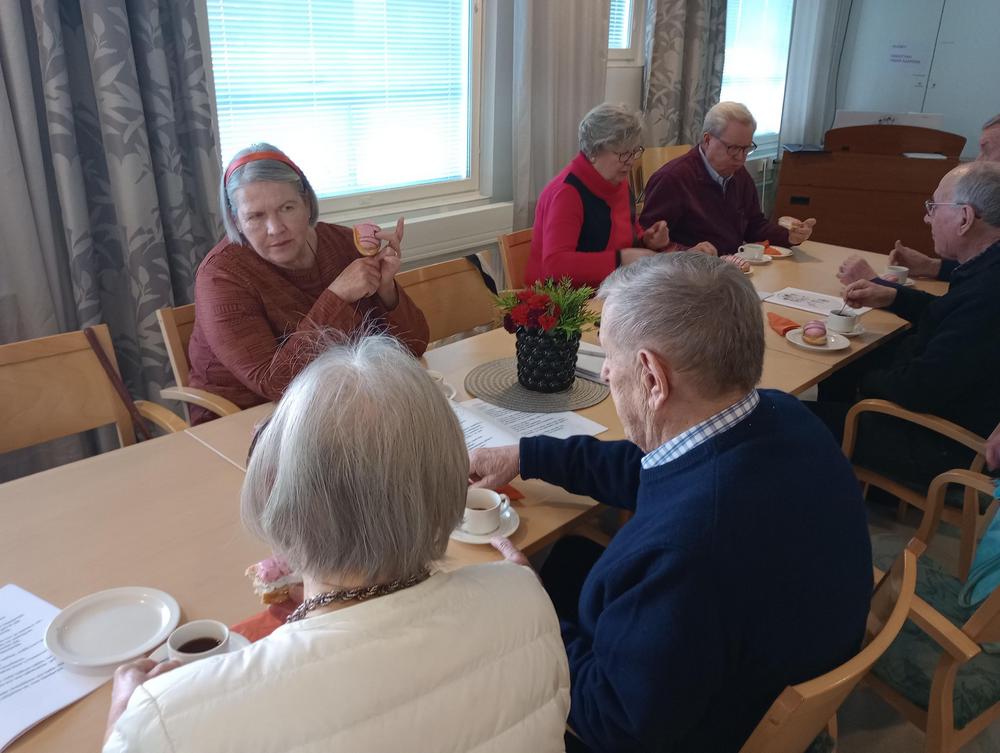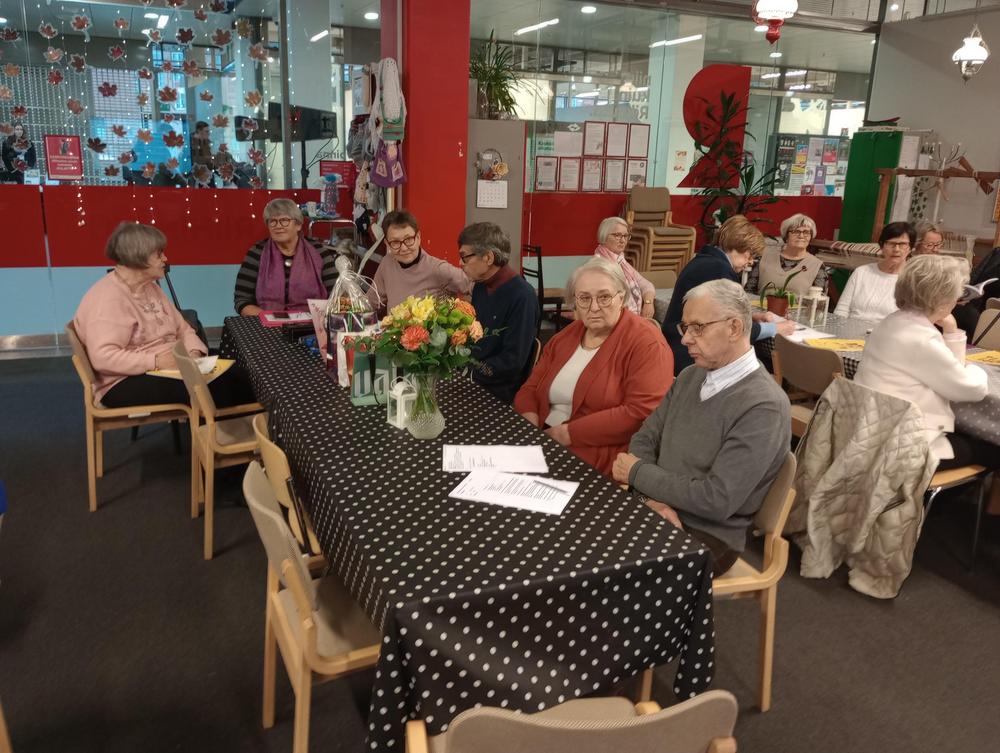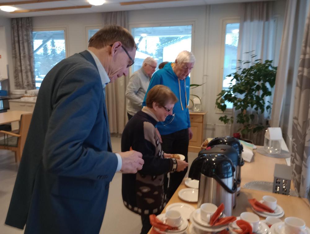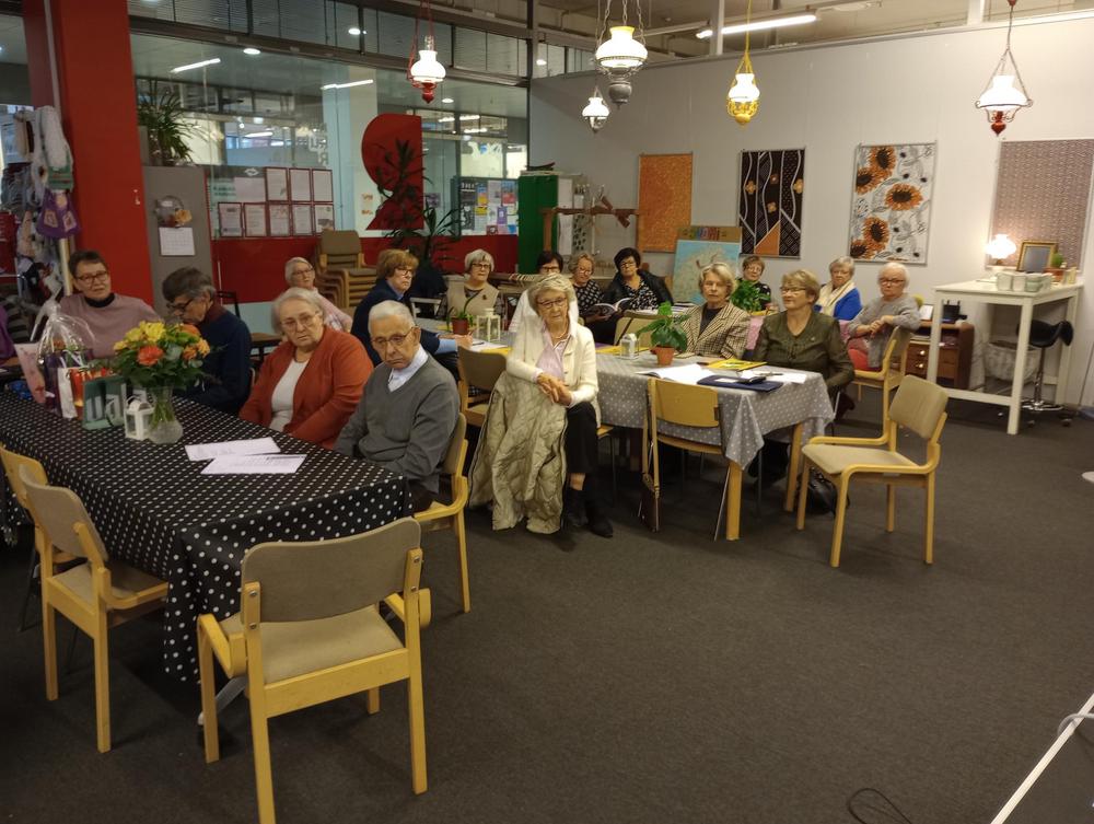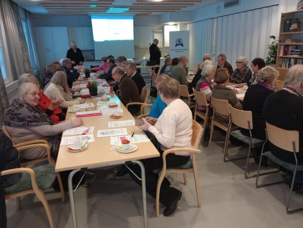 Keskiviikko 18.1. Kokoonnuimme uudessa paikassa, Inkilänhovissa. Ohjelmassa oli rovasti Kalervo Huttusen tervehdys seurakunnasta sekä pois nukkuneiden muistaminen. Maiju kertoi tulevista retkikohteista ja Jari puhui somesta ja senioripuhelimista. Tapaamiseen osallistui 44 senioria.
