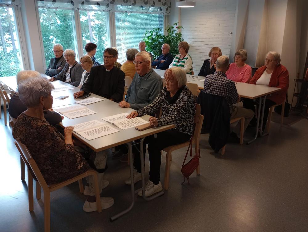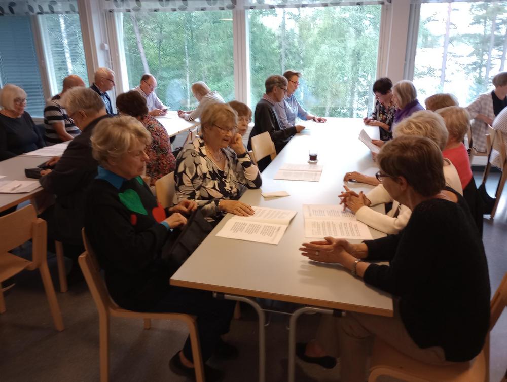 13.9.2023 kuukausitapaamisessa aloitimme uuden toimintakauden perinteisesti Riihimäen seurakunnan leirikeskuksessa, Hirvijärvellä. Seurakunnan tervehdyksen toi kappalainen Kari Kauppinen. Matka leirikeskukseen tehtiin omilla autoilla.