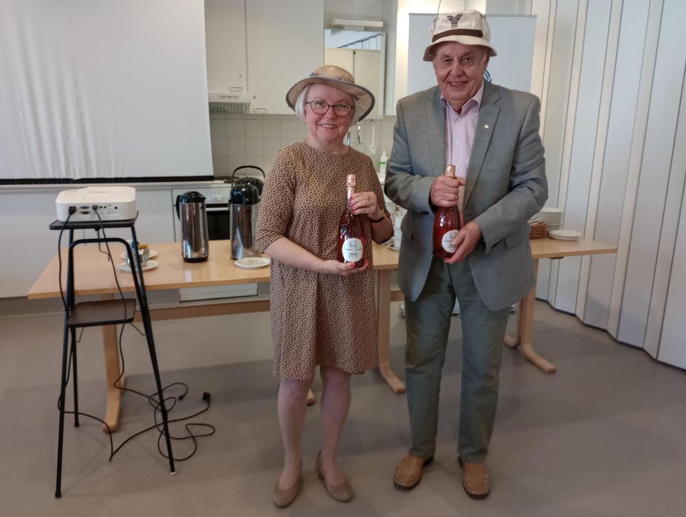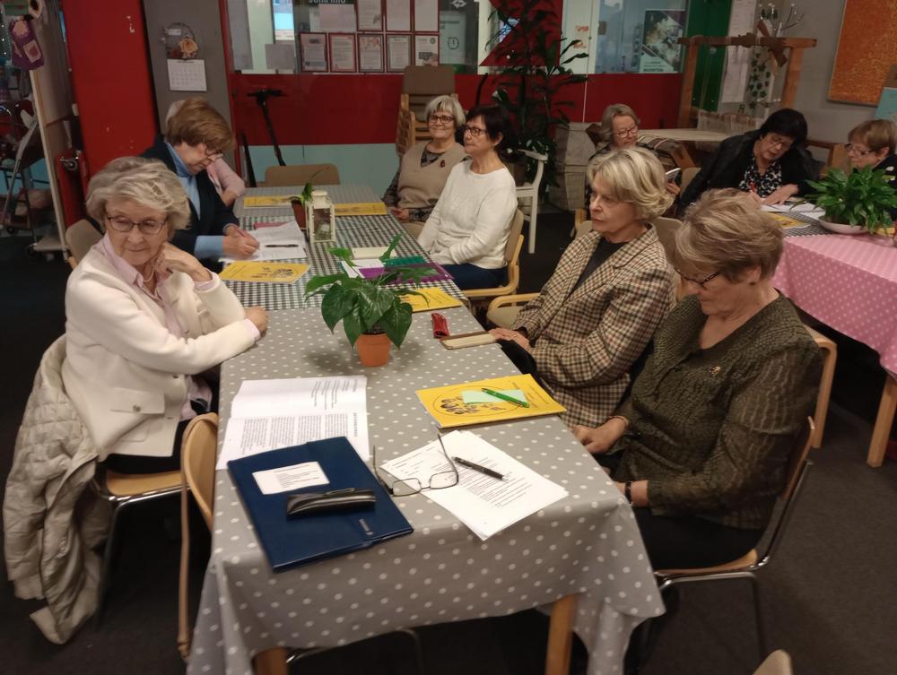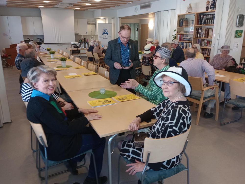 10.5 kuukausitapaamisessa Sinikka Salonen ja Sirpa Lahdensalo Riihimäen SPR:stä kertoivat ensiavun annosta, sekä sydäniskurin käytöstä. Hattujuhlan voittajat olivat Liisa ja Pekka.