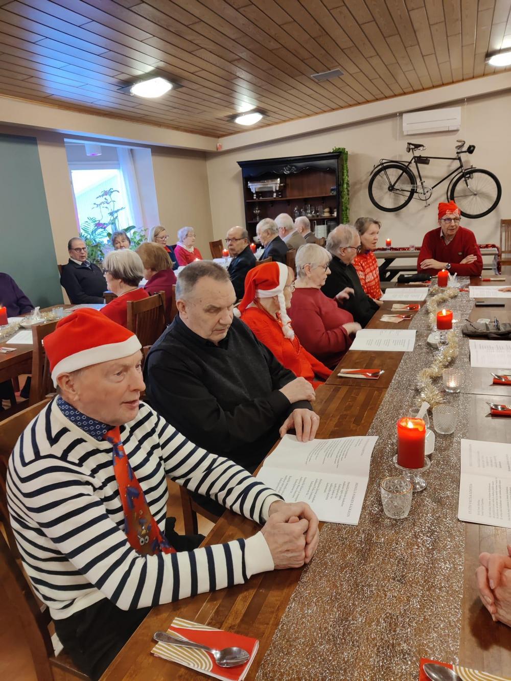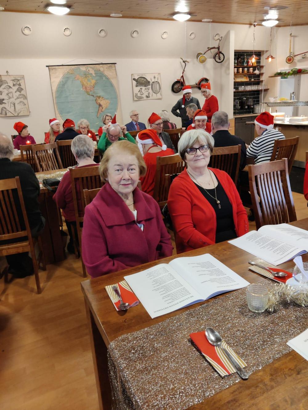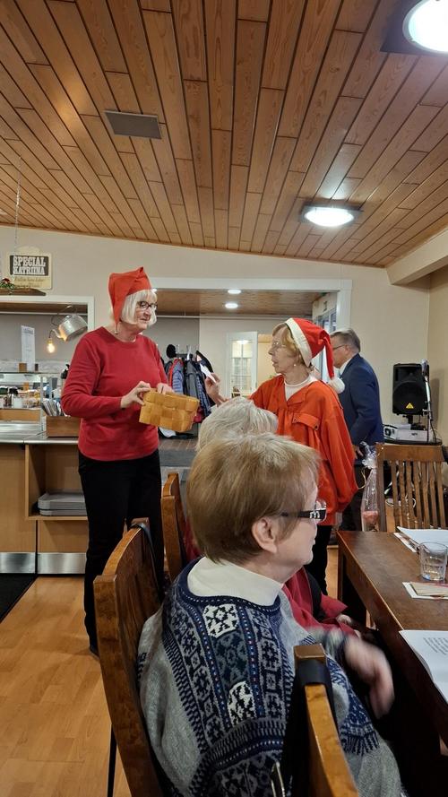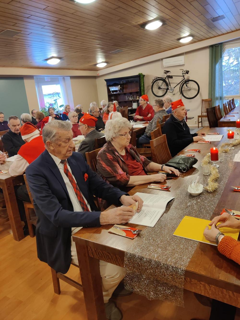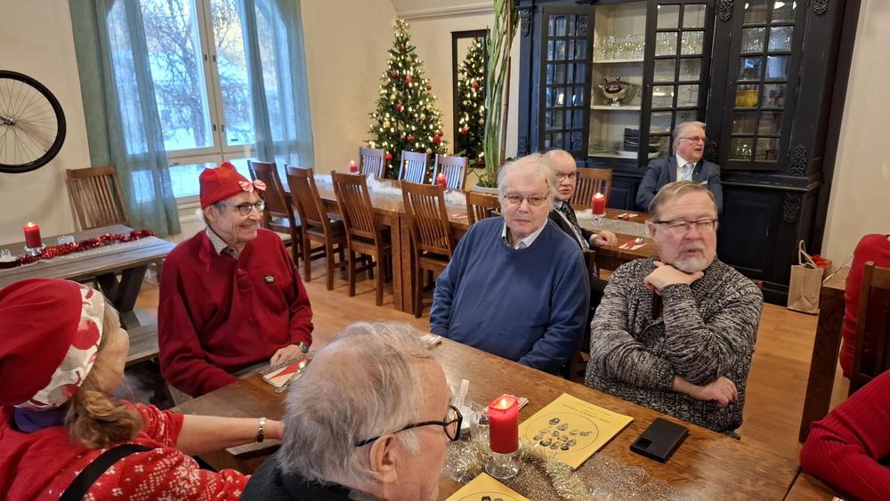 Keskiviikkona 11.12.2024 vuoden viimeinen kuukausitapaaminen Puurojuhlana ravintola Rucolassa. Tarjolla oli mm. glögiä, riisipuuroa ja täytekakkua, joista nauttivat kaikki paikallaolleet 49 senioria. Raimo Turtiainen & poika lauloivat ja laulattivat jouluisia kappaleita. Pj Jari Salonen lopetti kauttansa puheellaan ja kukitti ansioituneet. Uusi pj Aino Närkki korosti jatkuvuutta ja esitteli uuden hallituksen. Arvonnan voitti onnekkaasti Aino. Juhla oli mukavan lämminhenkinen.