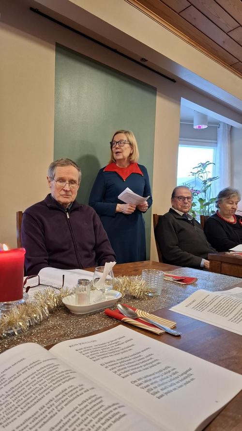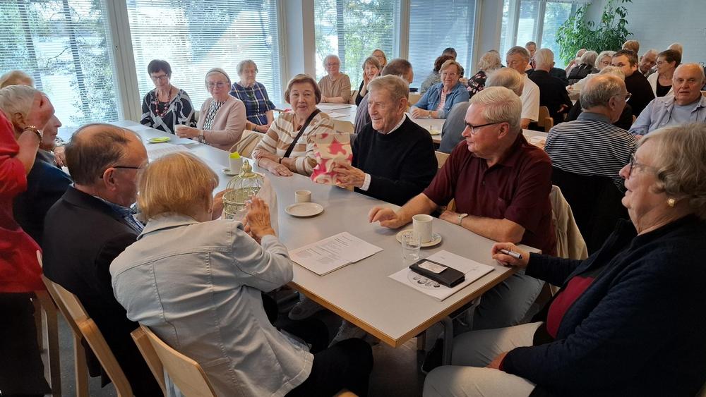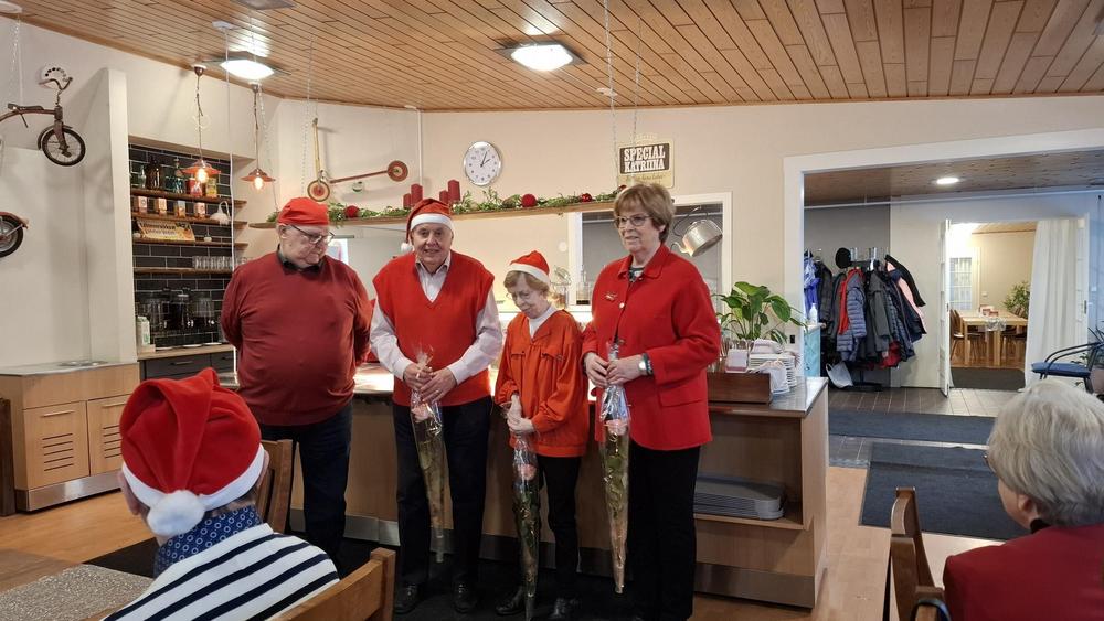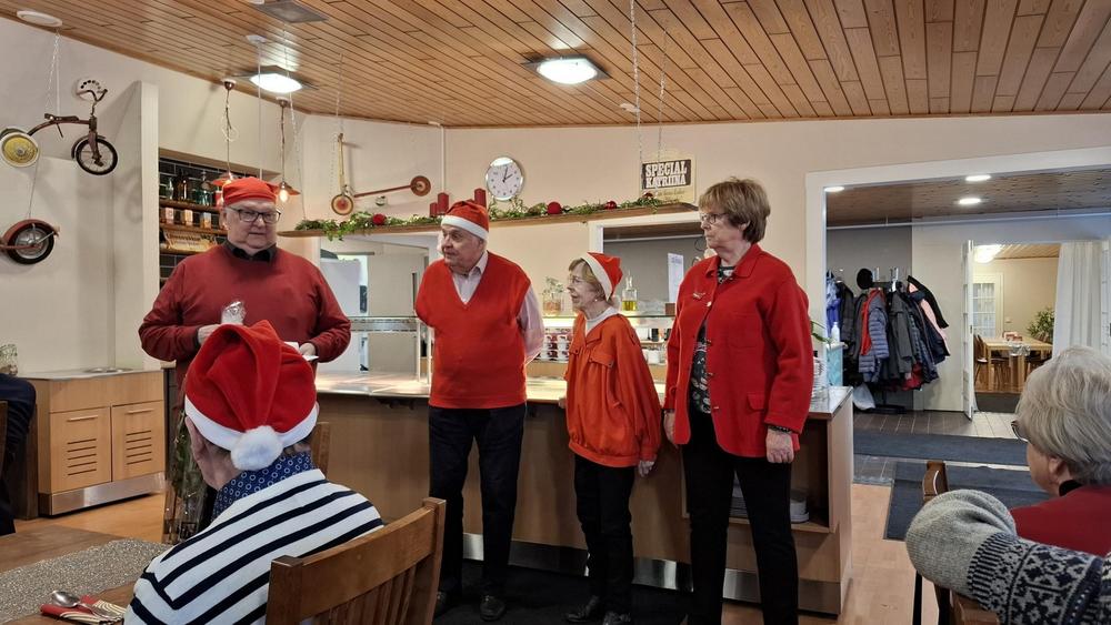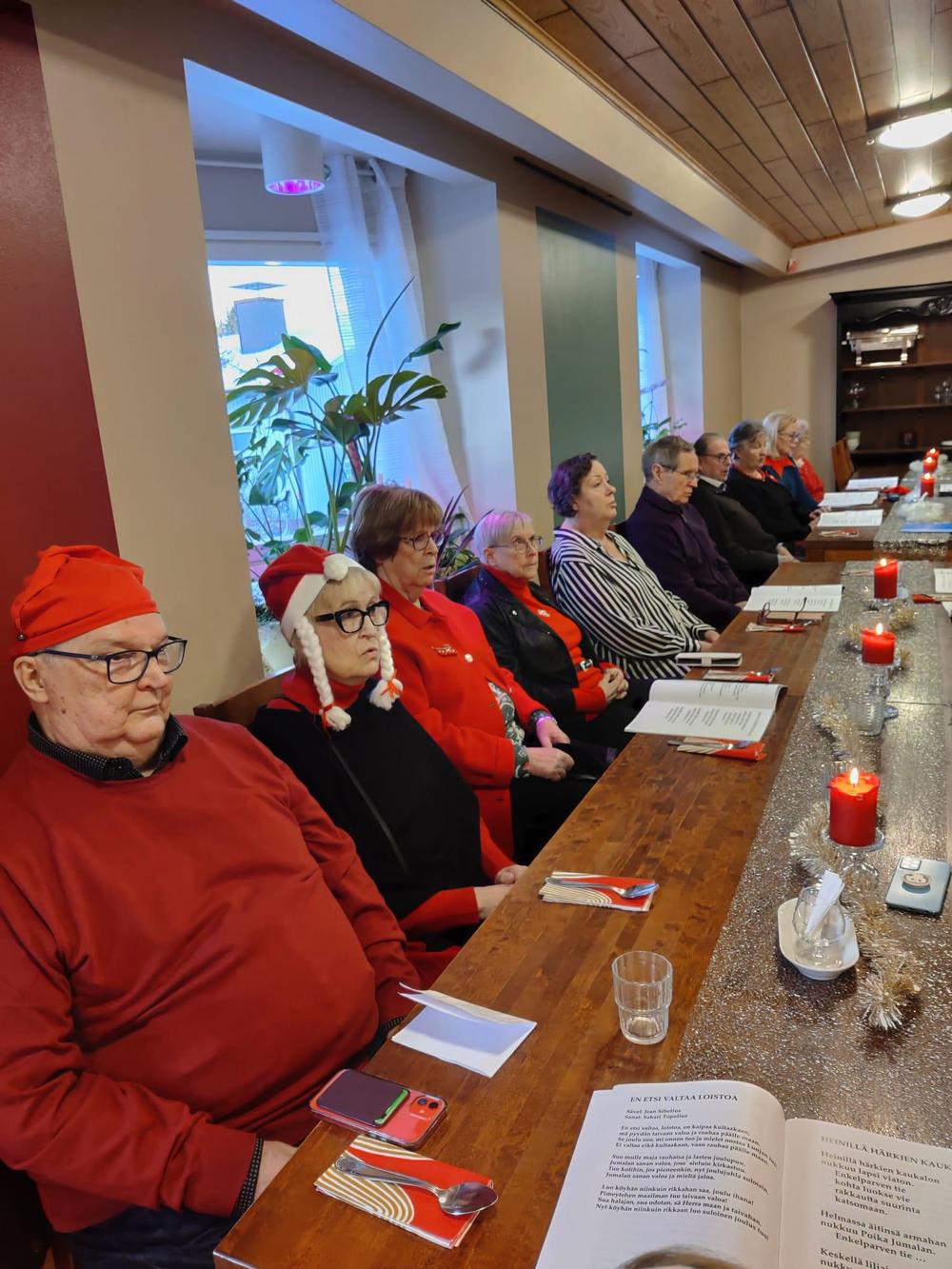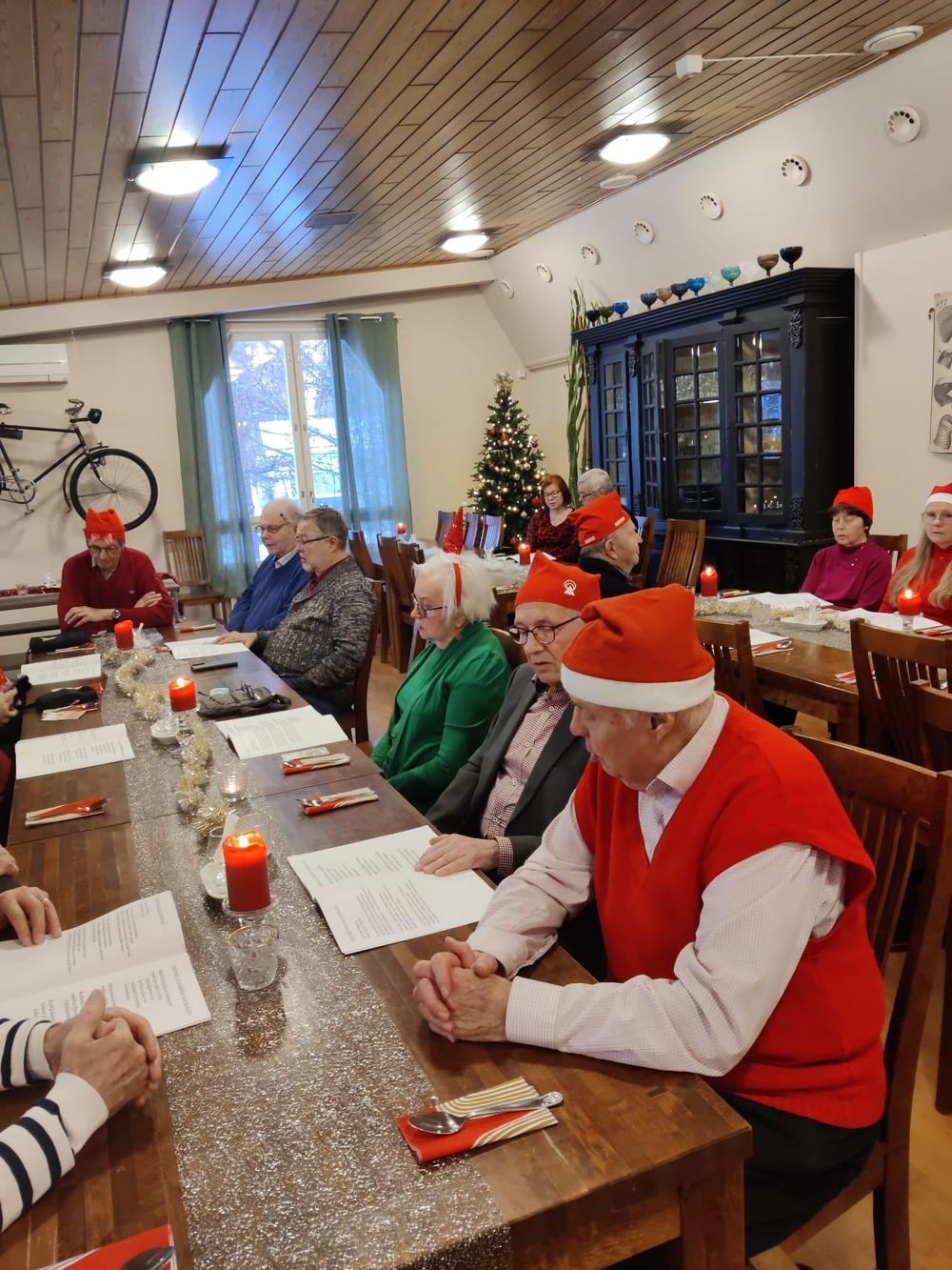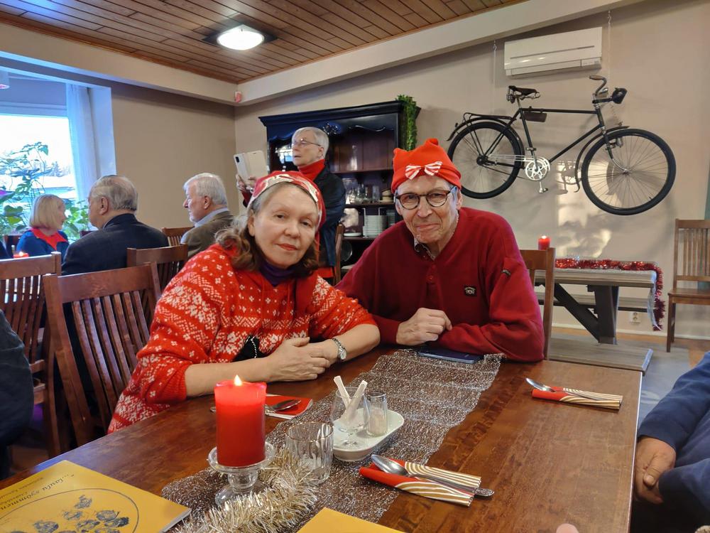 Keskiviikkona 11.12.2024 vuoden viimeinen kuukausitapaaminen Puurojuhlana ravintola Rucolassa. Tarjolla oli mm. glögiä, riisipuuroa ja täytekakkua, joista nauttivat kaikki paikallaolleet 49 senioria. Raimo Turtiainen & poika lauloivat ja laulattivat jouluisia kappaleita. Pj Jari Salonen lopetti kauttansa puheellaan ja kukitti ansioituneet. Uusi pj Aino Närkki korosti jatkuvuutta ja esitteli uuden hallituksen. Arvonnan voitti onnekkaasti Aino. Juhla oli mukavan lämminhenkinen.