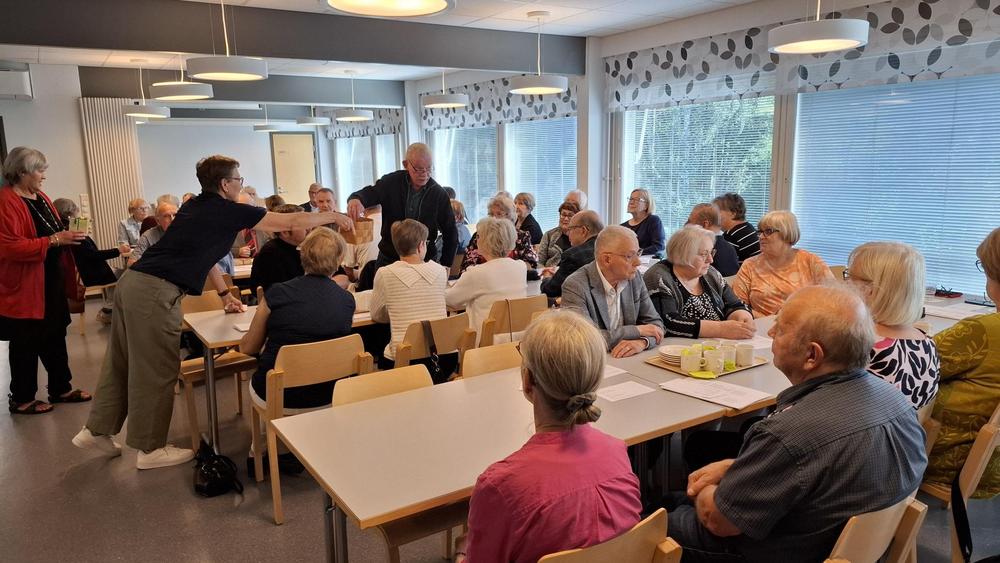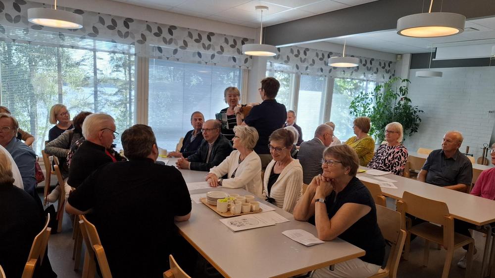 Keskiviikkona 11.9.2024 vietimme syyskuun kuukausitapaamisen Hirvijärvellä. Puheenjohtaja käynnisti syyskauden. Seurakunnasta oli mukana johtava kappalainen Teemu Saarinen, joka siunasi ruoan. Oma Dir.Mus. Erkki Ojanen musisoi. Marjut kertoi syyskauden tapahtumista. Kuvista voi laskea osallistujamäärän, joka oli lähellä viittikymmentä. Kiitos kaikille läsnäolleille.
