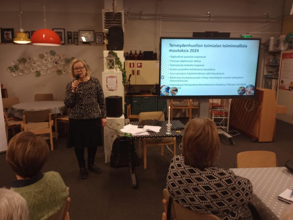 Keskiviikkona 10.4.2024 kuukausitapaaminen Inkilänhovissa. Osallistujia oli 47, joka on uusi ennätys, käytännössä tupa täynnä. Aihe oli MUISTISAIRAUKSIEN ENNELTAEHKÄISYSTÄ JA HOIDOSTA, josta hyvän asiantuntija-alustuksen piti Kanta-Hämeen muistiyhdistyksen muistiasiantuntija Marko Mustiala.