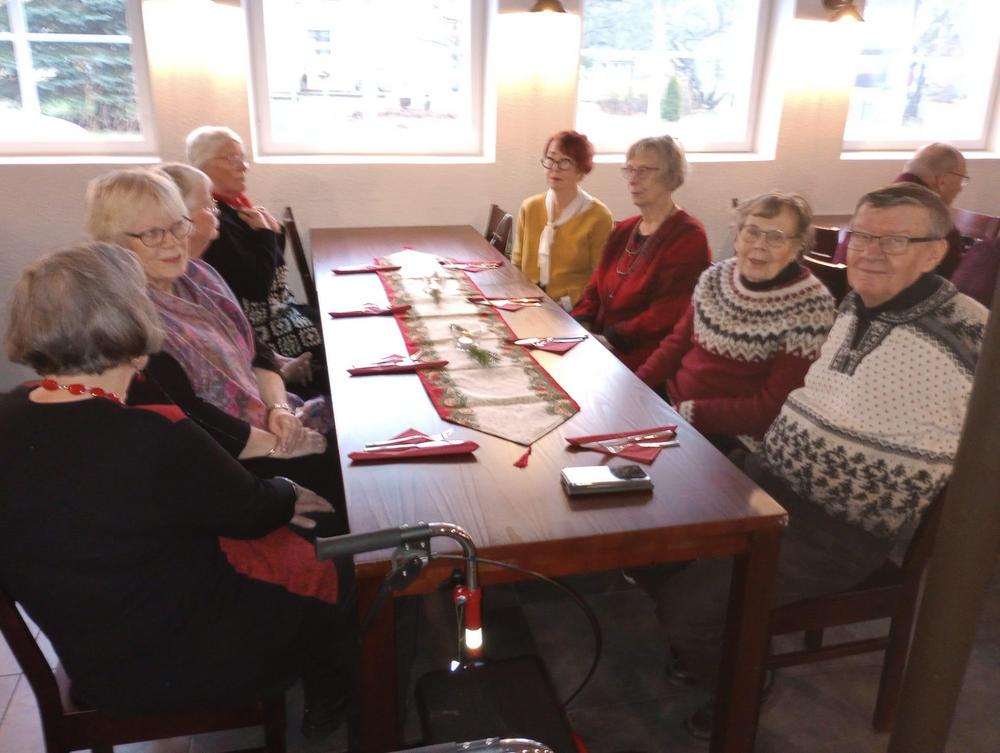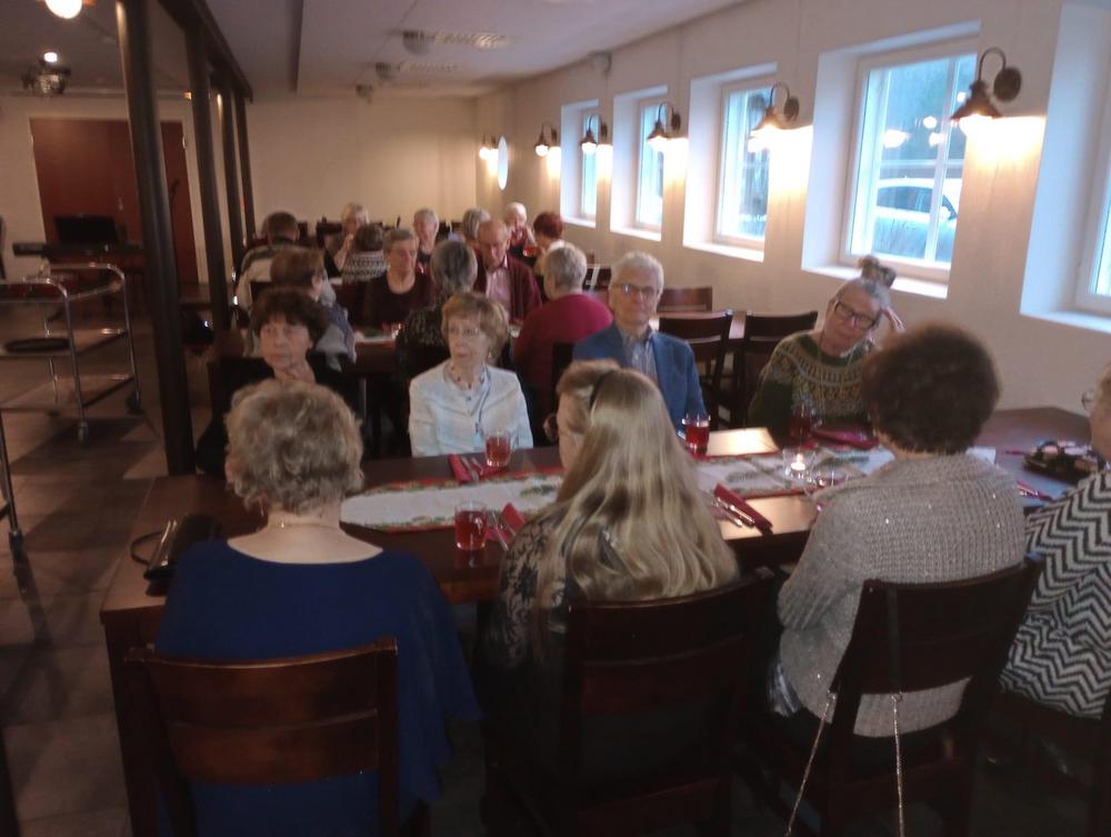 Yhdistyksemme matkusti Hämeenlinnan kupeessa sijaitsevaan maalaismiljööseen Rimmilään. Könnölän matkailutilan juhlanavetassa vietimme yhteistä joulujuhlaa 56 seniorin kanssa. Vanhaan harmaatiilinavettaan kunnostettu juhlatila tarjosi nostalgiset puitteet joulujuhlaamme. Pikkujoulumme kruunasi tietenkin herkullinen jouluruokailu. Mukana meillä oli Lopen seinioreita, tutustuimme ja pohdimme yhteistyömahdollisuuksia. Puheita pitivät väistyvä puheenjohtaja Jari Salonen, uusi puheenjohtaja Aino Närkki ja myös Lopen senioreiden pj Jyrki Tammilehto sekä runonlausuntaa Aulis Nikkola. Huipennuksena näimme Tiernapoikien esityksen, joka oli varsin vaikuttava kokonaisuus. Alla on iso joukko kuvia tilaisuudesta usealta kuvanottajalta sekä lisäksi lyhyt otos Tiernapoikien esityksestä. Katsokaa ja nauttikaa kuvasadosta.