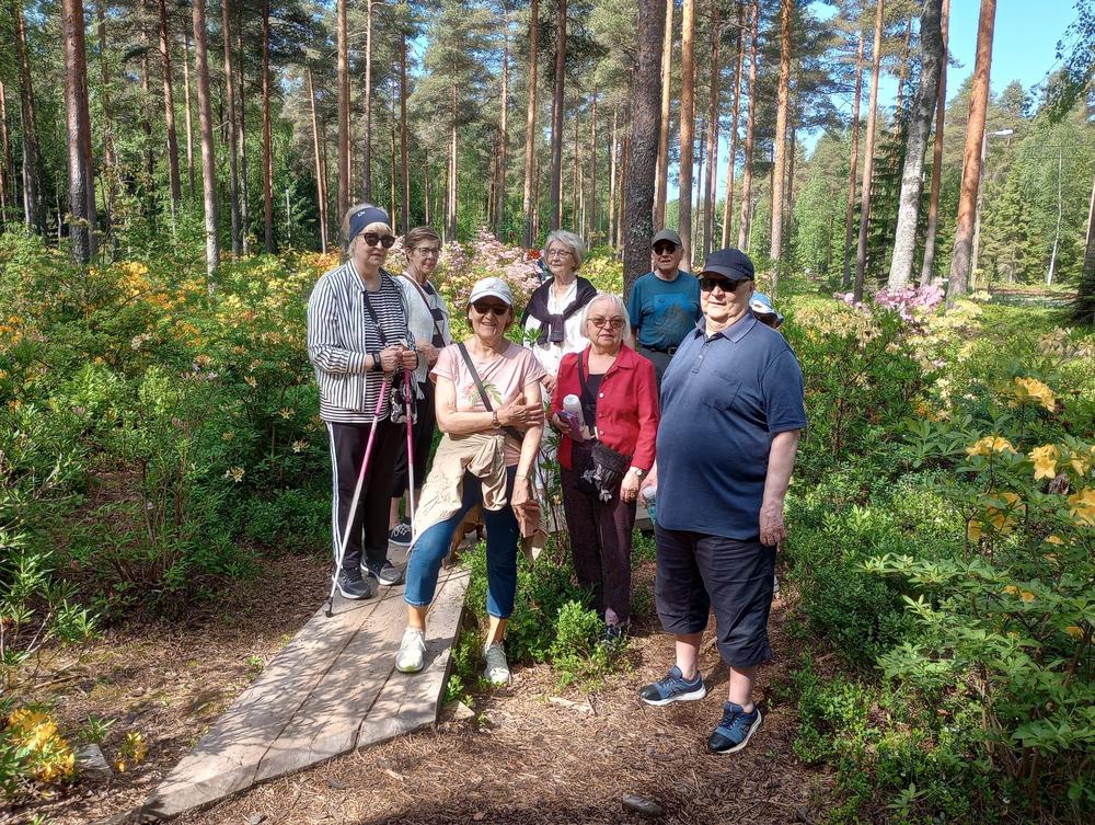 Vuoden toiseen yhteiskävelyyn 4.6.2024 osallistui 9 senioria. Kävelimme Atsalea-puistossa aurinkoisessa kesäsäässä. Kuvissa kaunista kukkaloistoa ja iloisia ulkoilijoita.