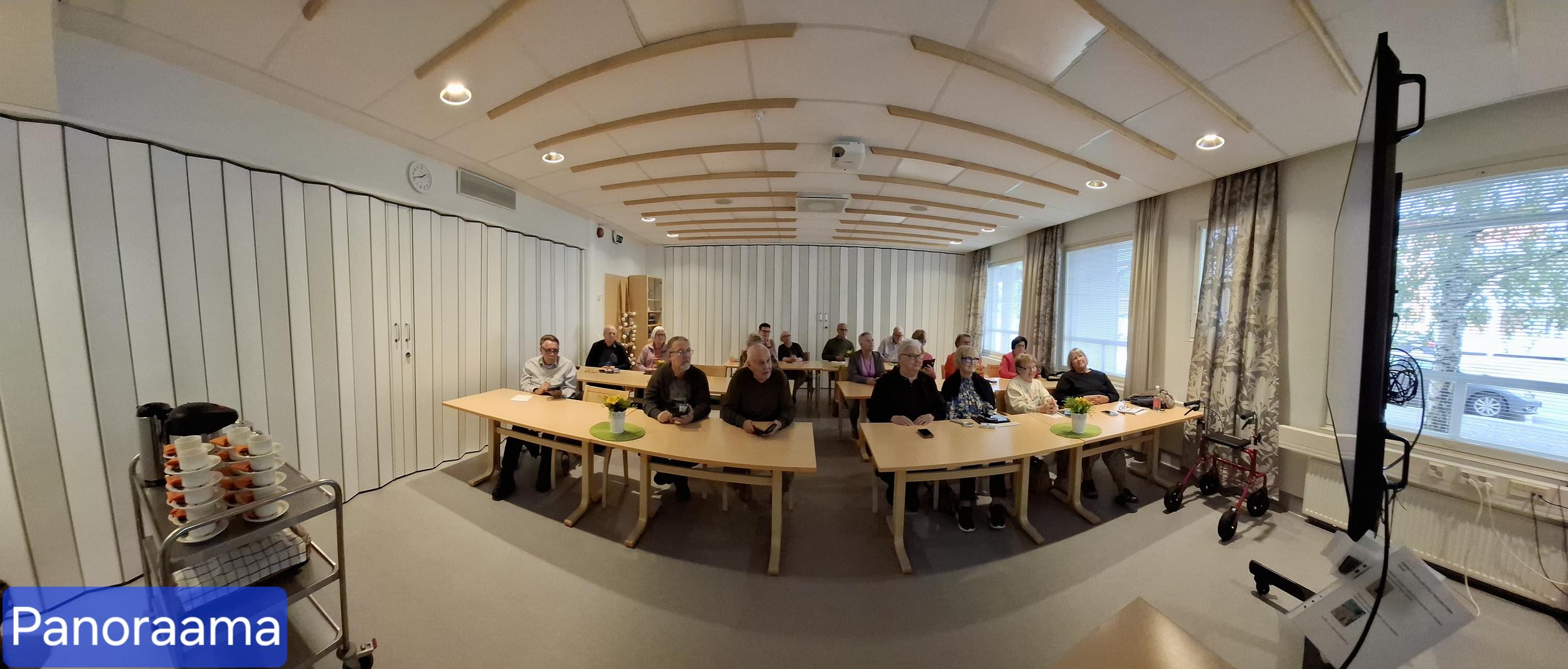 Esityksen luennoi yhdistyksemme digivastaava Ilkka. Aihe selvästi kiinnosti, osallistujia yli 40. Järjestelyistä kiitos Kotokartanosäätiön Susannalle. Kuva tiiviistä tunnelmasta.