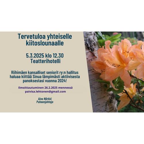 Kiitoslounas yhdistyksemme toimitsijoille - iso kiitos osallistujille panoksestanne, jonka avulla toimintamme jatkuu aktiivisena, totesi puheenjohtajamme Aino Närkki.
