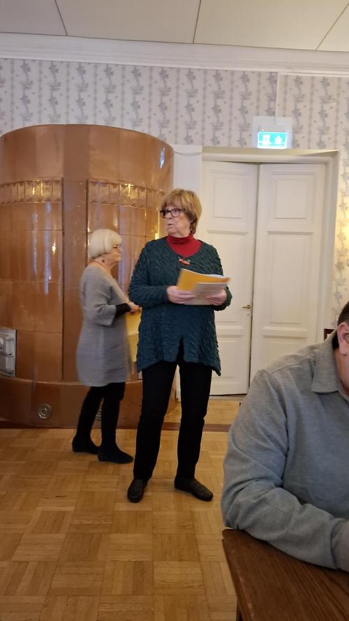 Pirjo-Liisa kertoi kuulumisia seniorilähettiläänä. Aino kertoi Eduskunta-retkestä ja Marjut Tarttoon suunnitellusta retkestä.