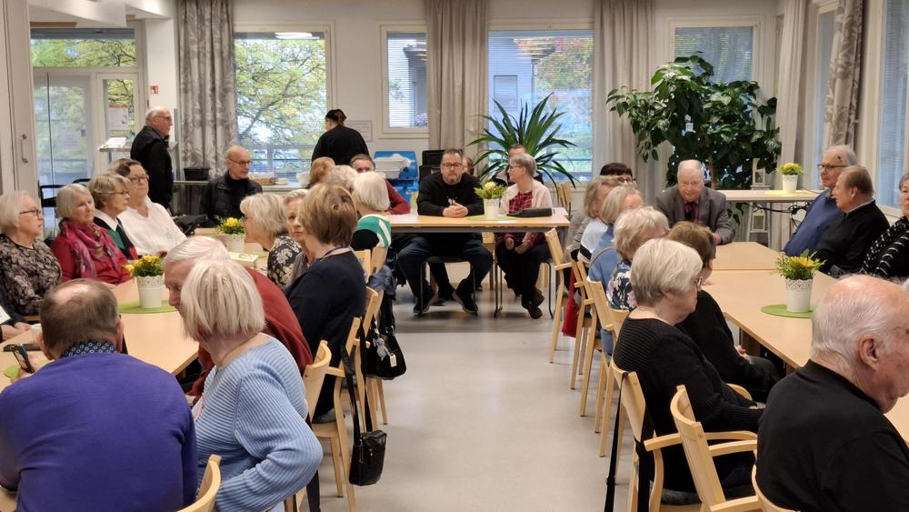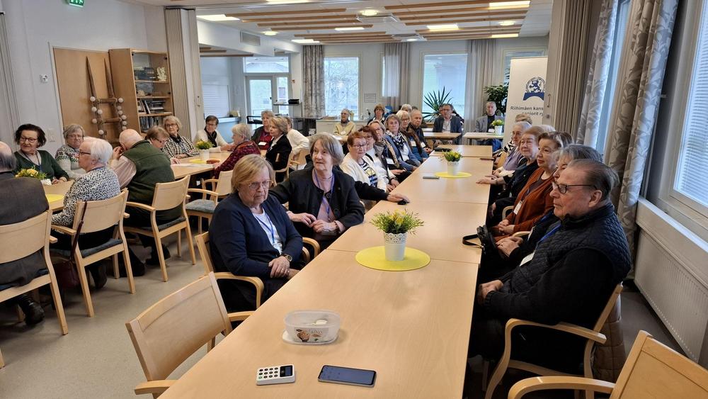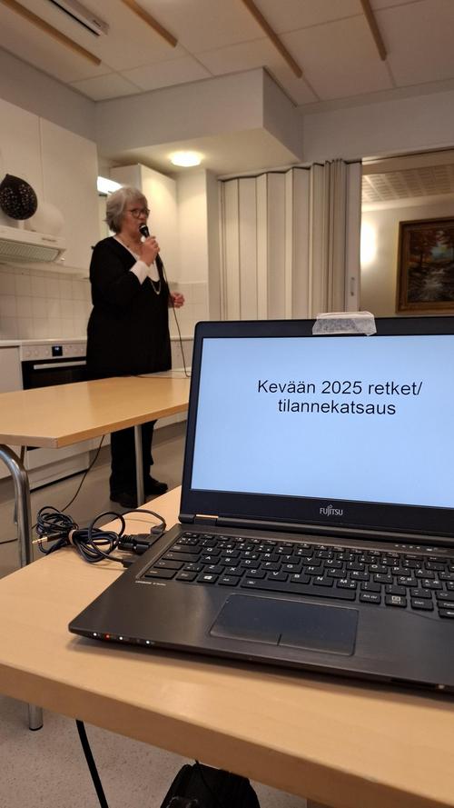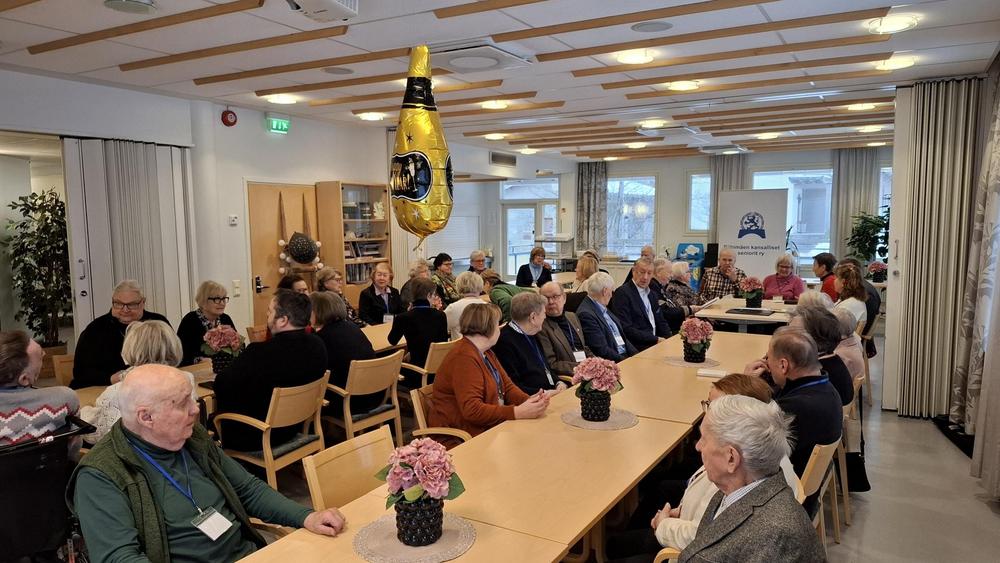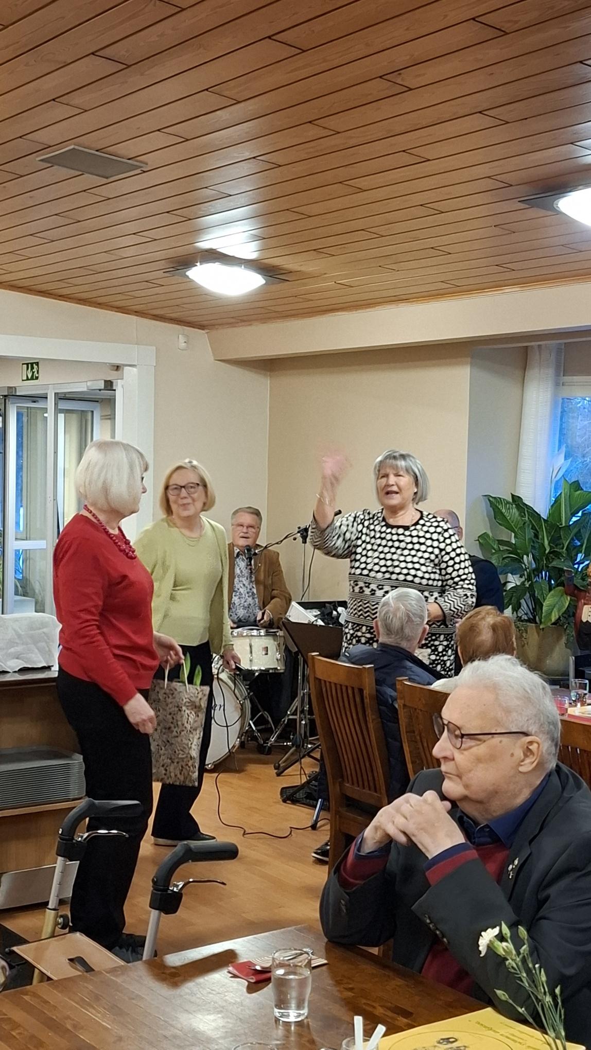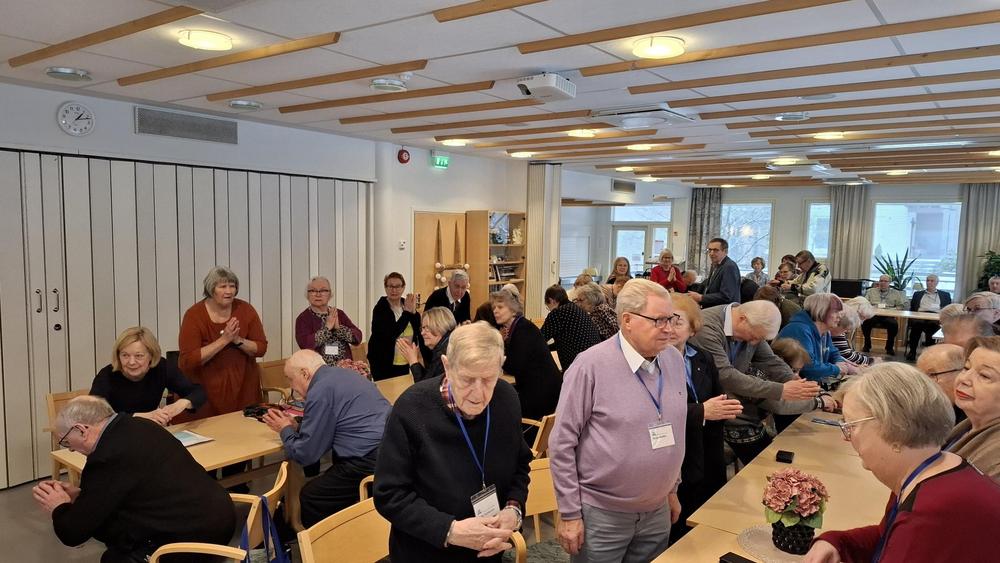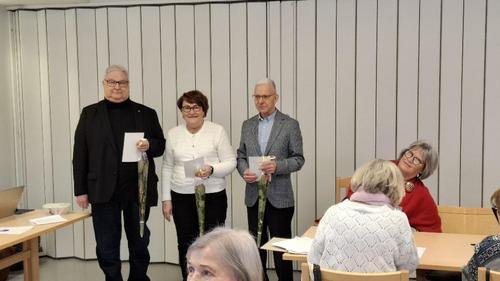 Keskiviikkona 12.3.2025 Kevätkokous kuukausitapaamisena Inkilänhovissa. Senioreita oli paikalla 46. Aluksi puheenjohtajamme Aino Närkki ja Päivi Lehtonen jakoivat ansiomerkkejä aktiiviseen toimintaan osallistumisesta seuraaville: hopeiset Jari Saloselle ja Eija Aittolalle sekä pronssiset Timo Heinoselle ja Raili Esselströmille. Kevätkokouksen veti Pirjo-Liisa Snellman-Tenhunen. Musiikillisen tietovisan junaili Päivi Lehtonen ja palkitsi parhaan ryhmän. Kesäkuun Tarton retken kuvaesittelyn piti Marjut Mikkonen. Näistä kaikista löytyy kuvia alla.