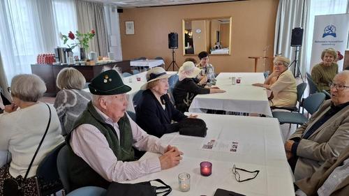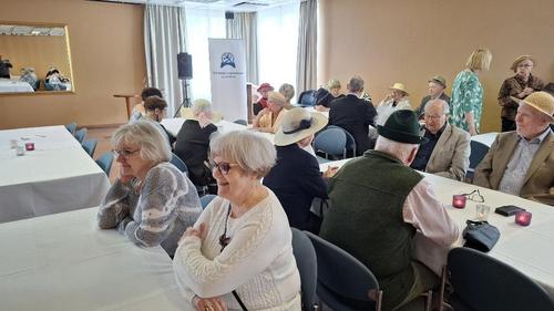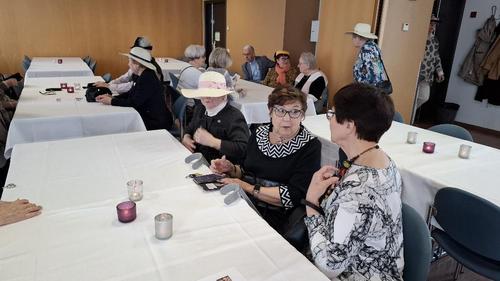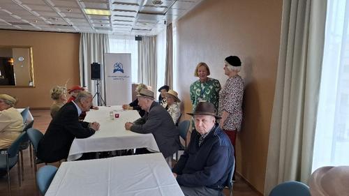 Keskiviikkona 7.5.2025 kesäkauden avajaiset Hattujuhlana Teatterihotellissa. Senioreita oli paikalla 30. Ohjelma alkoi kultaisen ansiomerkin luovutuksella Marja-Leena Vuoriselle, onnea. Katja Peacock esitti runoja ja mietteitä kesästä. Kahvibuffan jälkeen myimme arpoja ja Päivi piti elokuvamusiikin tietovisan ja palkitsi voittajat. Hattujuhlan huipennus oli tietenkin hattukisan voitto ja voittajat olivat Eeva-Liisa ja Ilkka, onnittelut!