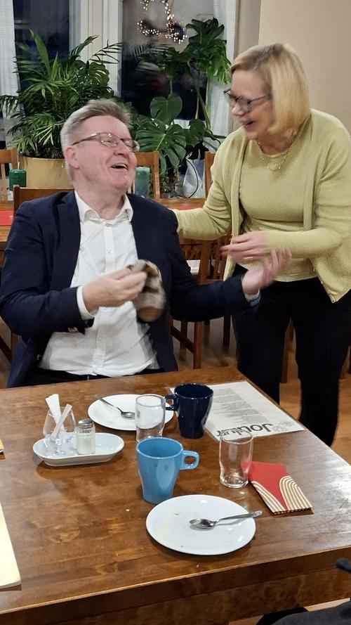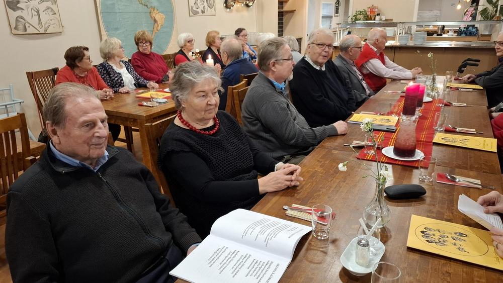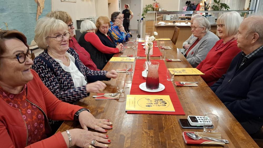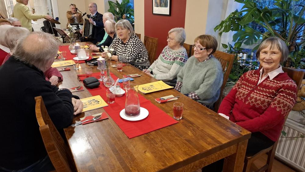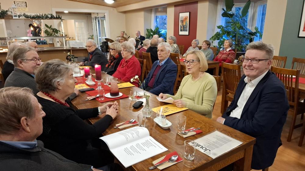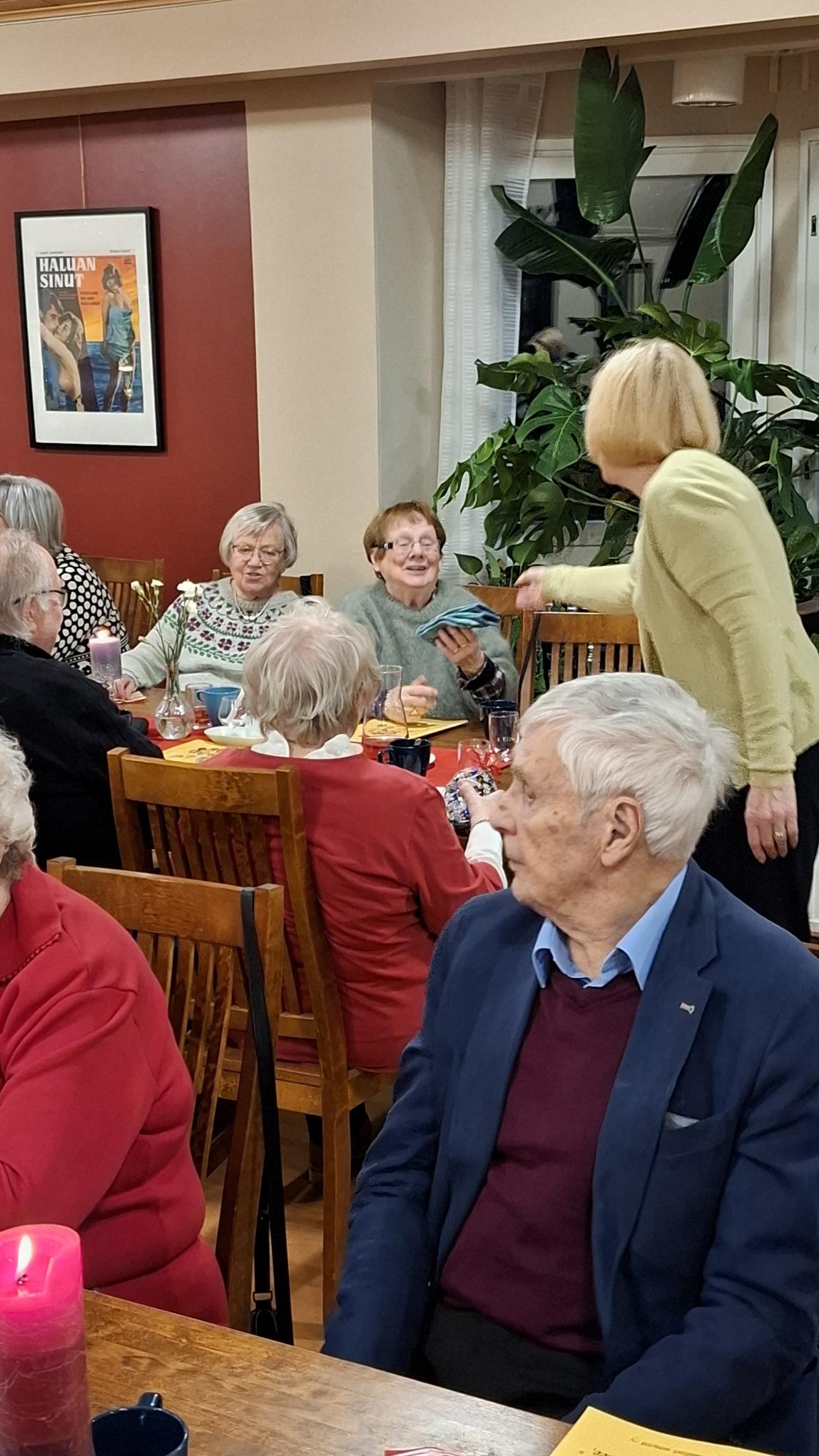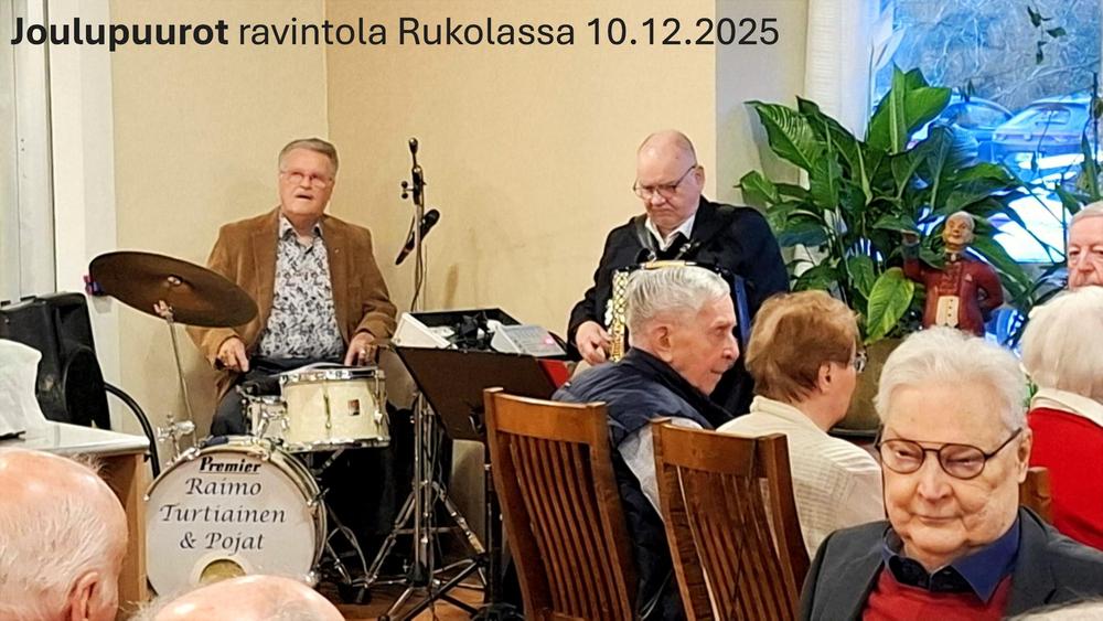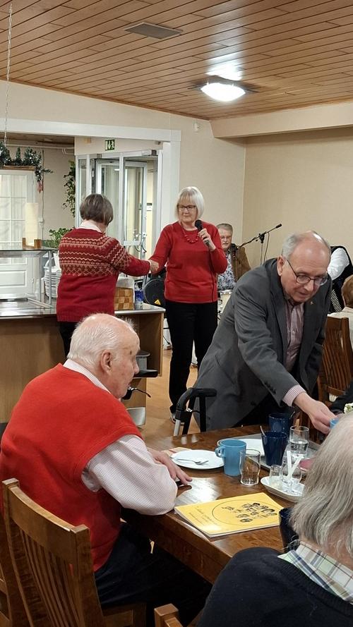 Keskiviikkona 10.12.2025 nautimme perinteisin joulupuuron ravintola Rukolassa. Paikalla oli 38 jäsentä. Ohjelmassa oli mm. pj Ainon tervehdykset osallistujille ja kiitokset hallituksesta poisjääville Marjut Mikkoselle ja Päivi Jokiselle. Joulumusiikin hoiti hienosti Raimo Turtiainen ja poika. Ja yhteislauluja laulettiin useita. Puuro ja sekahedelmäsoppa sekä täytekakku maistuivat kaikille, kiitos Rukolalle. Mainion joulurunon esitti Jorma Katila. Arpojen arvonta tuotti monelle iloa ja pääpalkinnon sai Sointu Ilonen.