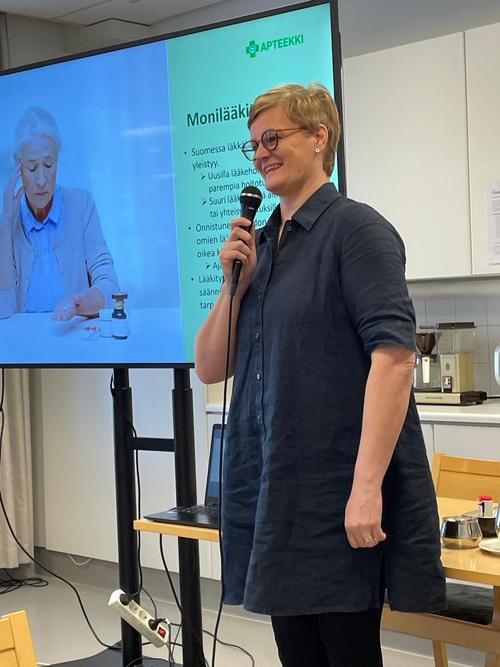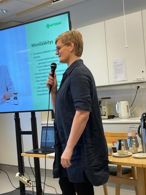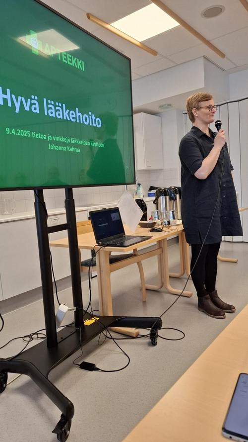 Keskiviikkona 9.4.2025 kuukausitapaaminen Inkilänhovissa. Senioreita oli paikalla 44. Varapuheenjohtajamme Marjut Mikkonen toivotti proviisori Johanna Kahman Aurinkoapteekista tervetulleeksi. Johanna piti esityksen aiheesta Hyvä lääkehoito ja vastasi hyvin moniin hänelle esitettyihin kysymyksiin.