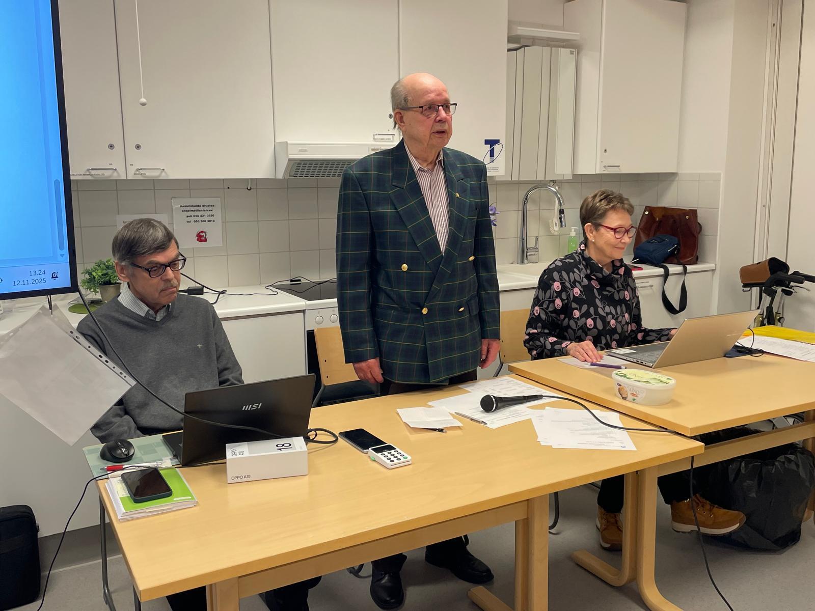 Keskiviikkona 12.11.2025 Syyskokous Inkilänhovissa. Paikalla oli 25 jäsentä. Virallisen syyskokouksen veti puheenjohtajana Sakari Heikkinen ja kokous meni hyvässä hengessä mallikkaasti. Kokouksen jälkeen Marjut kertoi loppuvuoden tapahtumista ja puheenjohtajamme Aino Riihimäen taloudesta.