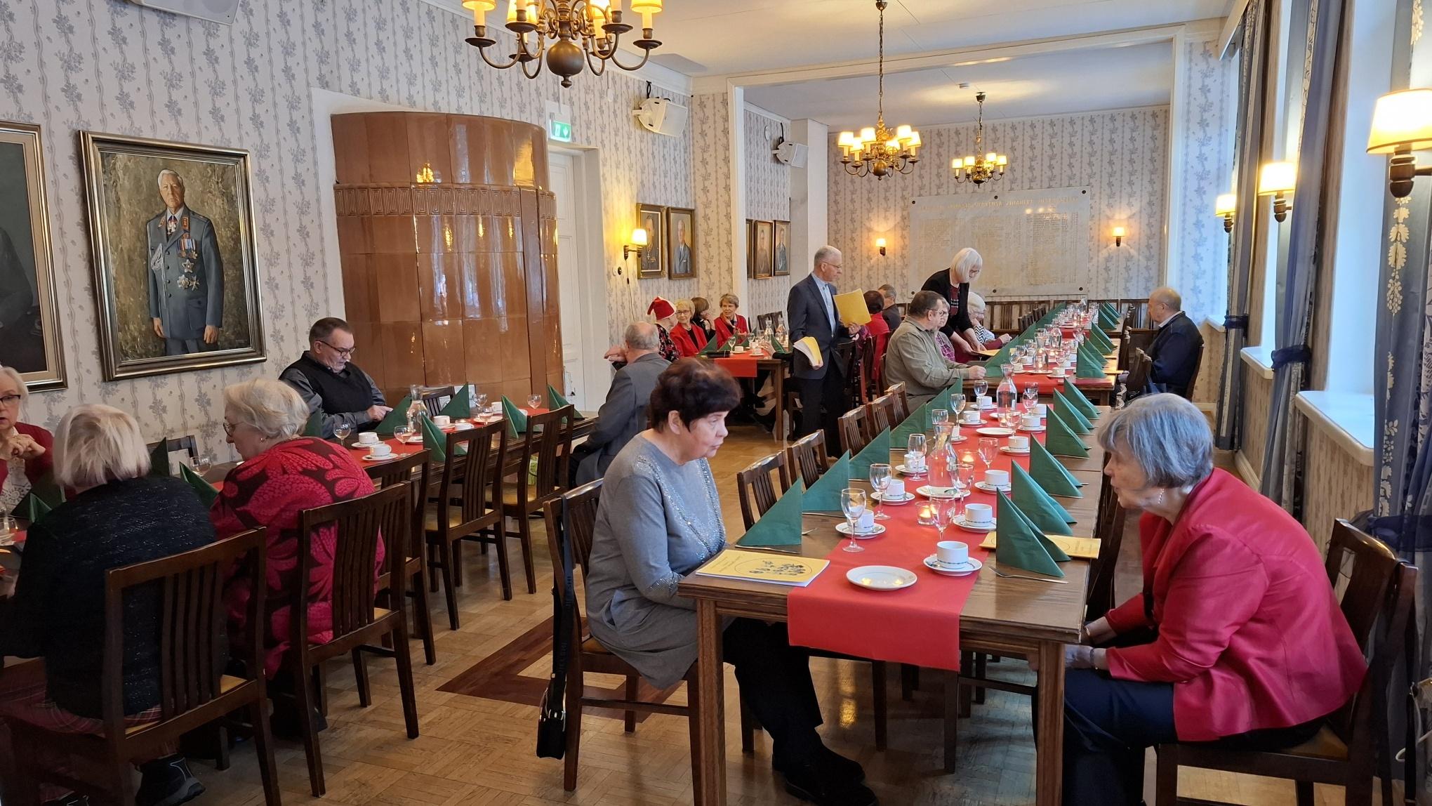 Keskiviikkona 26.11.2025 nautimme perinteisin joululounaan Riihimäen Upseerikerholla. Paikalla oli 56 jäsentä. Ohjelmassa oli lyhyet puheet ja tietoiskut sekä puheensorinalla höystettyä yhdessäoloa. Yhteiset joululaulut soivat hienosti esilaulajien johdolla. Tarjoilut hoiti hienosti Upseerikerhon uusi yrittäjä Hanna Häppölä, kiitos paljon.