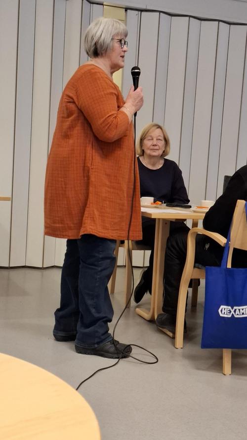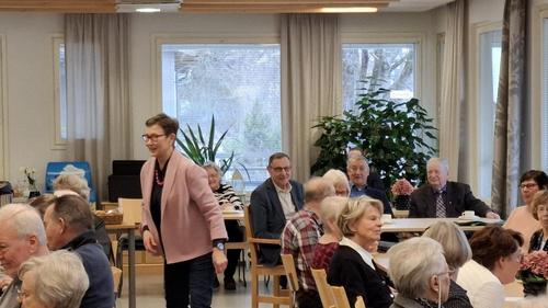 Pirjo-Liisa kertoi kuulumisia seniorilähettiläänä. Aino kertoi Eduskunta-retkestä ja Marjut Tarttoon suunnitellusta retkestä.
