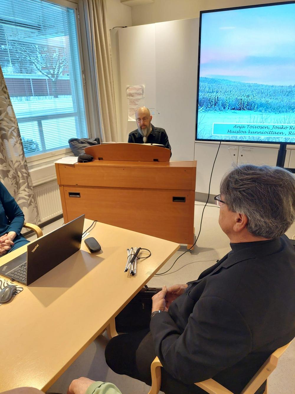 Pj Aino Närkki toivotti kaikki ystävällisesti tervetulleiksi. Kappalainen Kari Kauppinen piti puheen ja muisti poisnukkuneita. Johtava kanttori Erkki Hannonen vastasi musiikista.